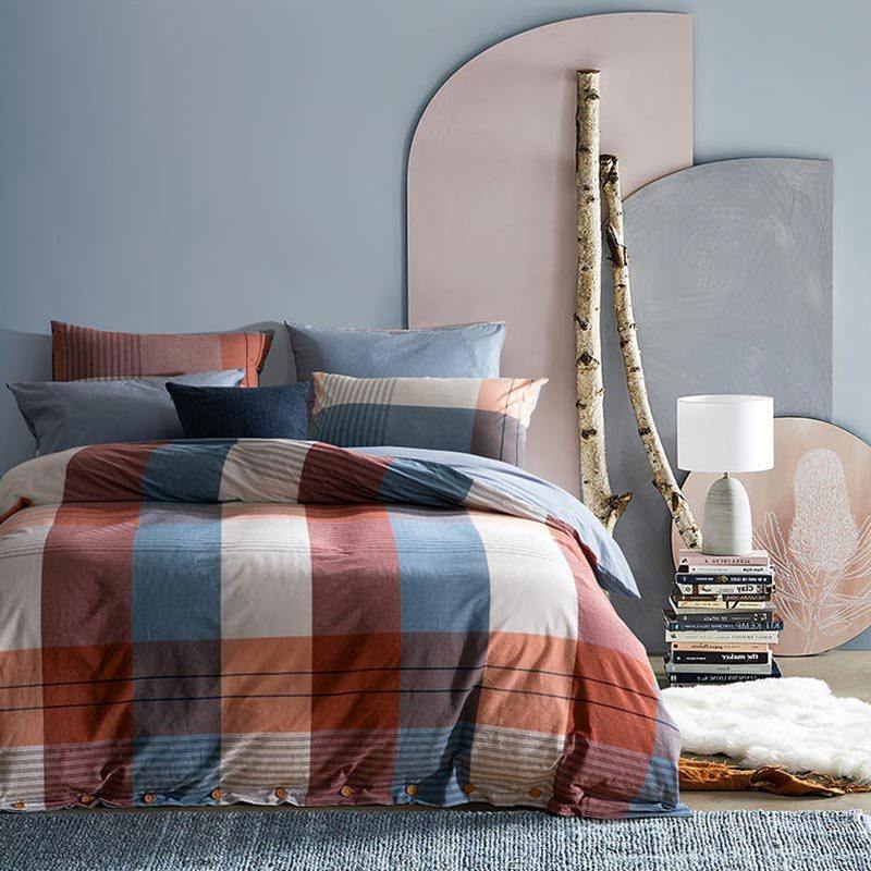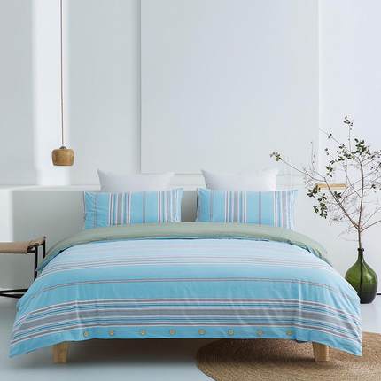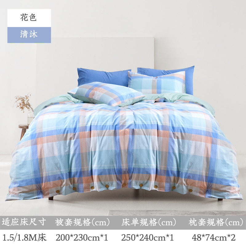远梦日式水洗棉四件套色织简约条纹格子风1.5/1.8m床单款批发代发