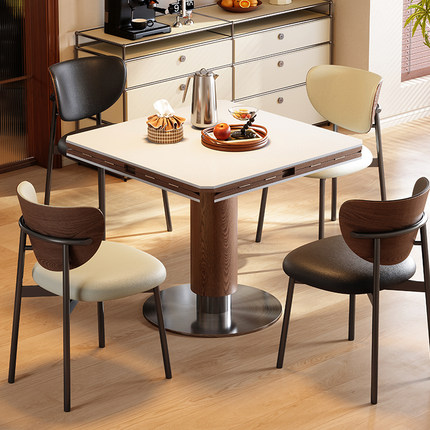 正方形折叠岩板餐桌中古风方圆