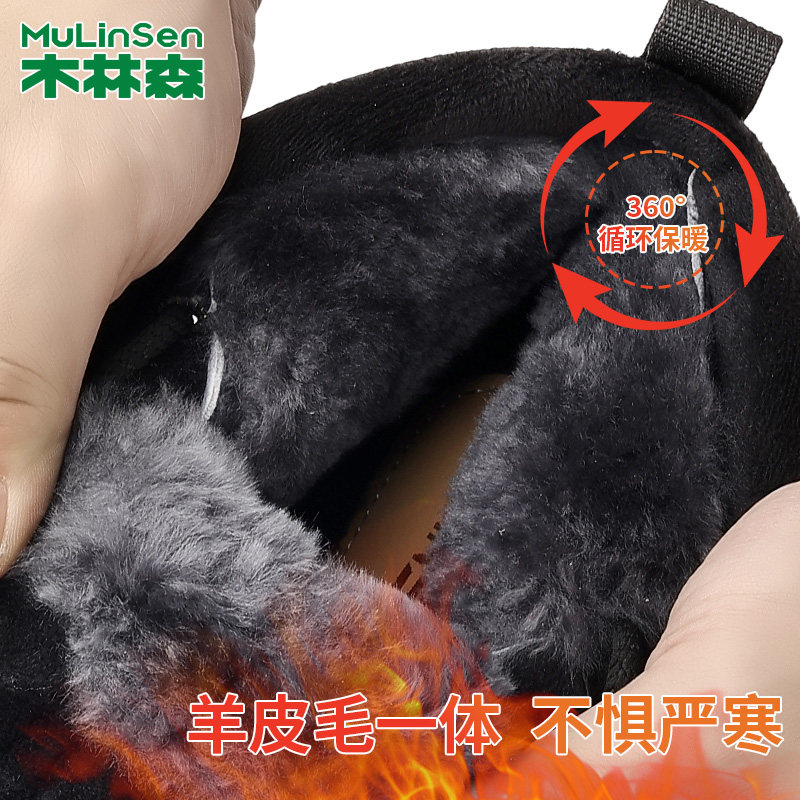 木林森雪地靴男新款棉鞋冬季加绒加厚保暖羊皮毛一体轻便休闲男鞋