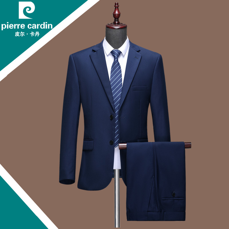 皮尔卡丹西服套装男羊毛中年商务职业上班正装免烫西装结婚礼服