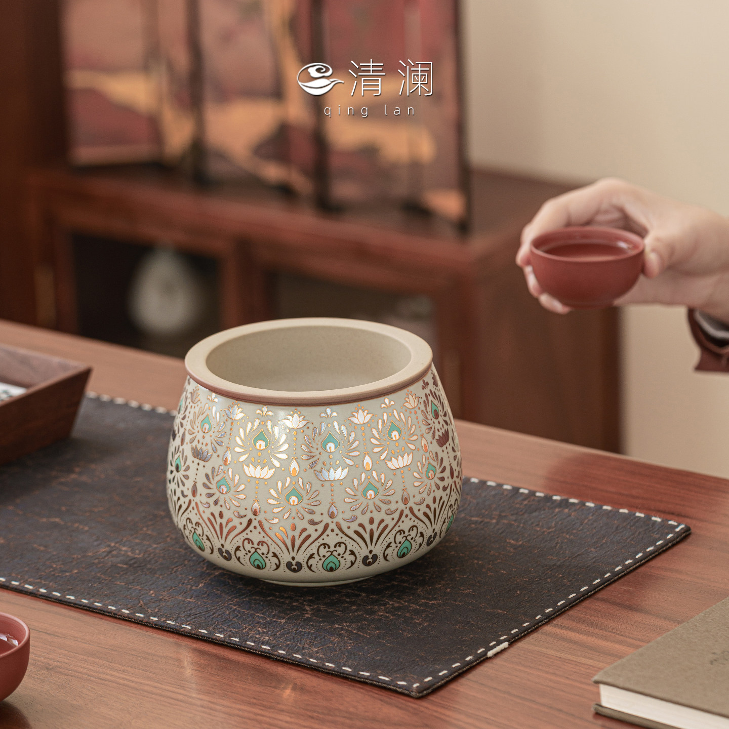 清澜汝窑茶洗茶渣缸高颜值家用桌面高档功夫茶具建水废水缸