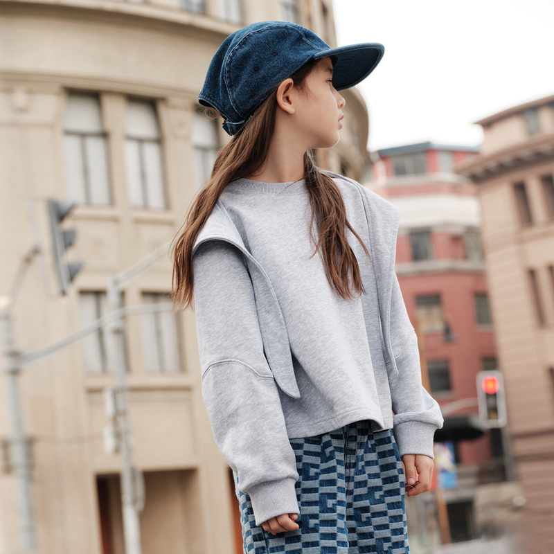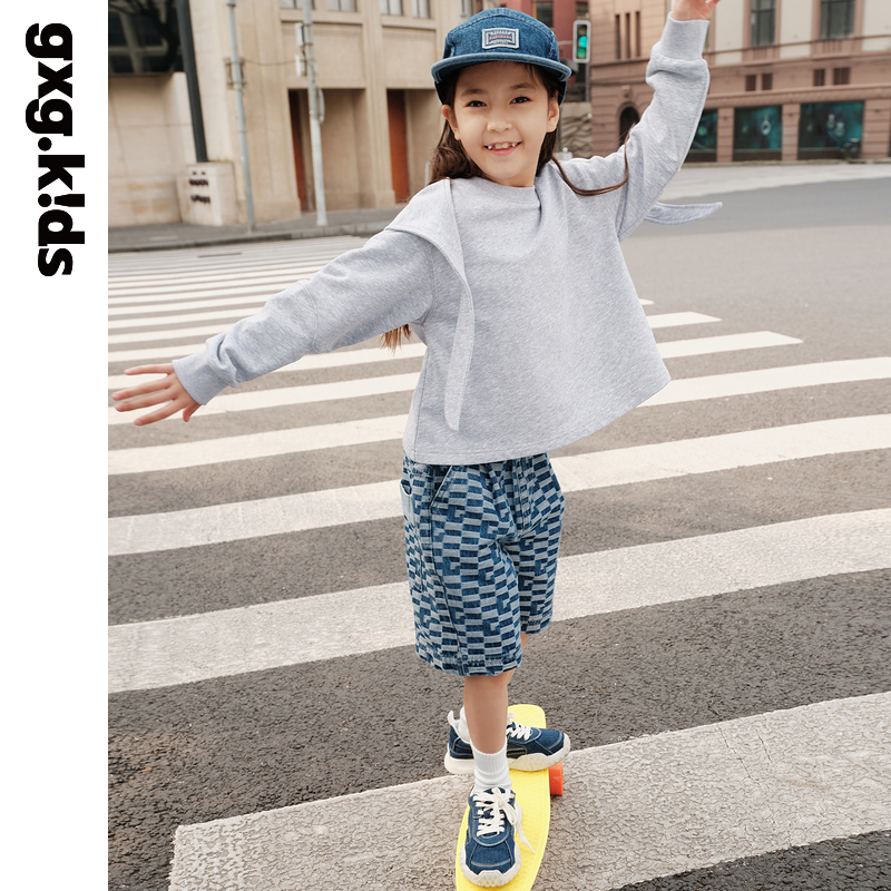 GXG童装春季儿童卫衣女童春装连帽可拆卸圆领简约休闲
