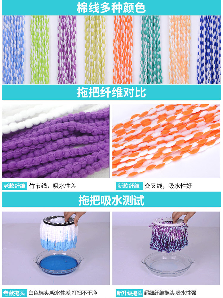 七彩龙通用加厚旋转拖把头替换头家用非纯棉墩布头配件大全吸水布