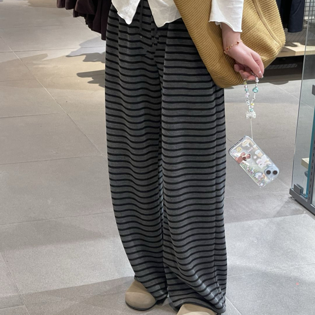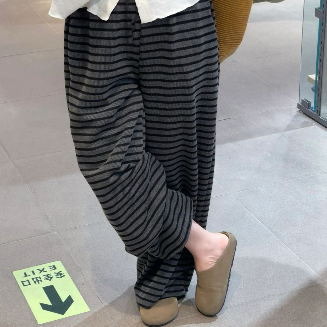 2025新薄款80-300斤可穿特大码睡裤女胖MM宽松休闲百搭条纹睡裤女