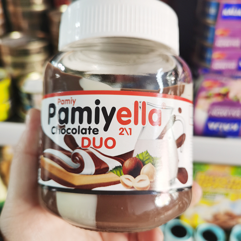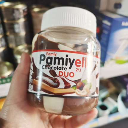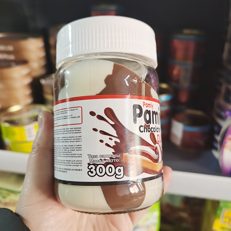 俄罗斯原装进口巧克力酱哈萨克斯坦葩梅拉榛子牛奶双色加糖面包酱