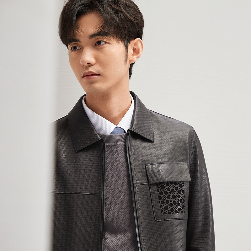 【绵羊皮】柒牌清仓真皮翻领皮衣男秋冬时尚潮流百搭工装外套