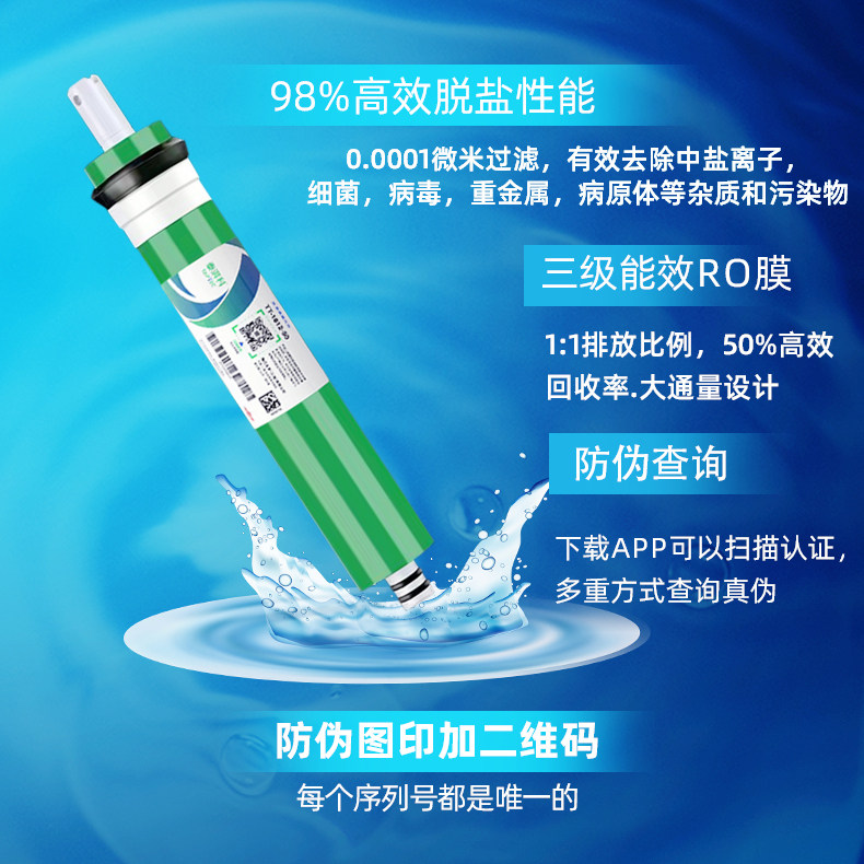 美国陶氏RO膜杜邦泰湃科1812-50G75/100/400家用商用反渗透ro滤芯
