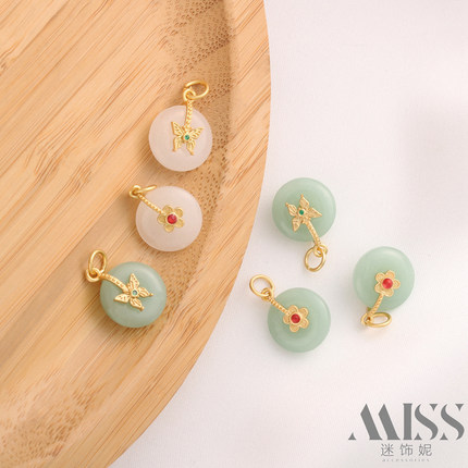 哑金保色蝴蝶小花玉石翡翠平安扣吊坠diy沙金项链耳坠耳饰品配件