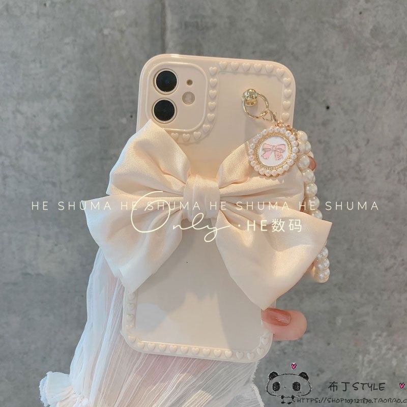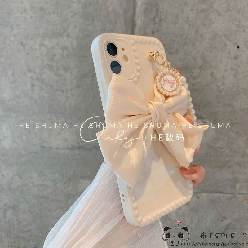 ins气质珍珠蝴蝶结适用iPhone15pro max手机壳16pro手链14plus苹果13/12防摔7plus硅胶se3新款xr防摔8/6/iP11