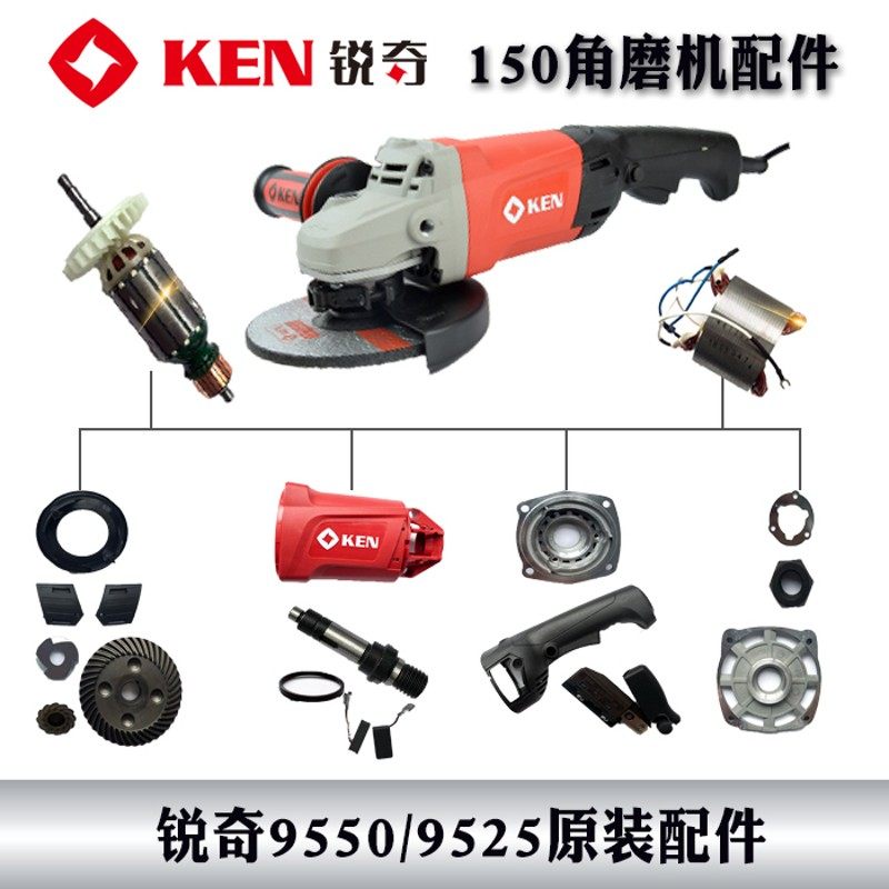 锐奇角磨机磨光机9525/9550配件转定子开关齿轮碳刷机头壳轴承套