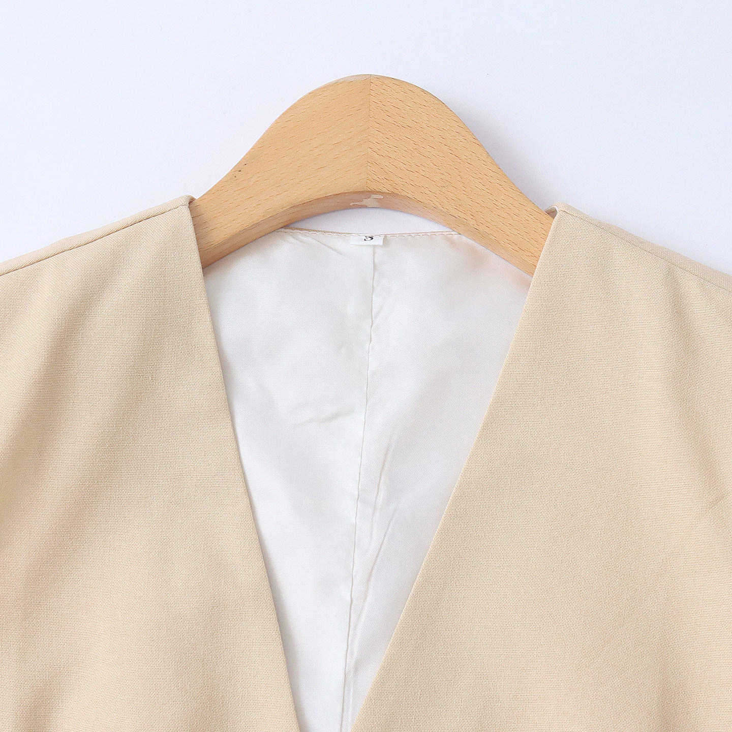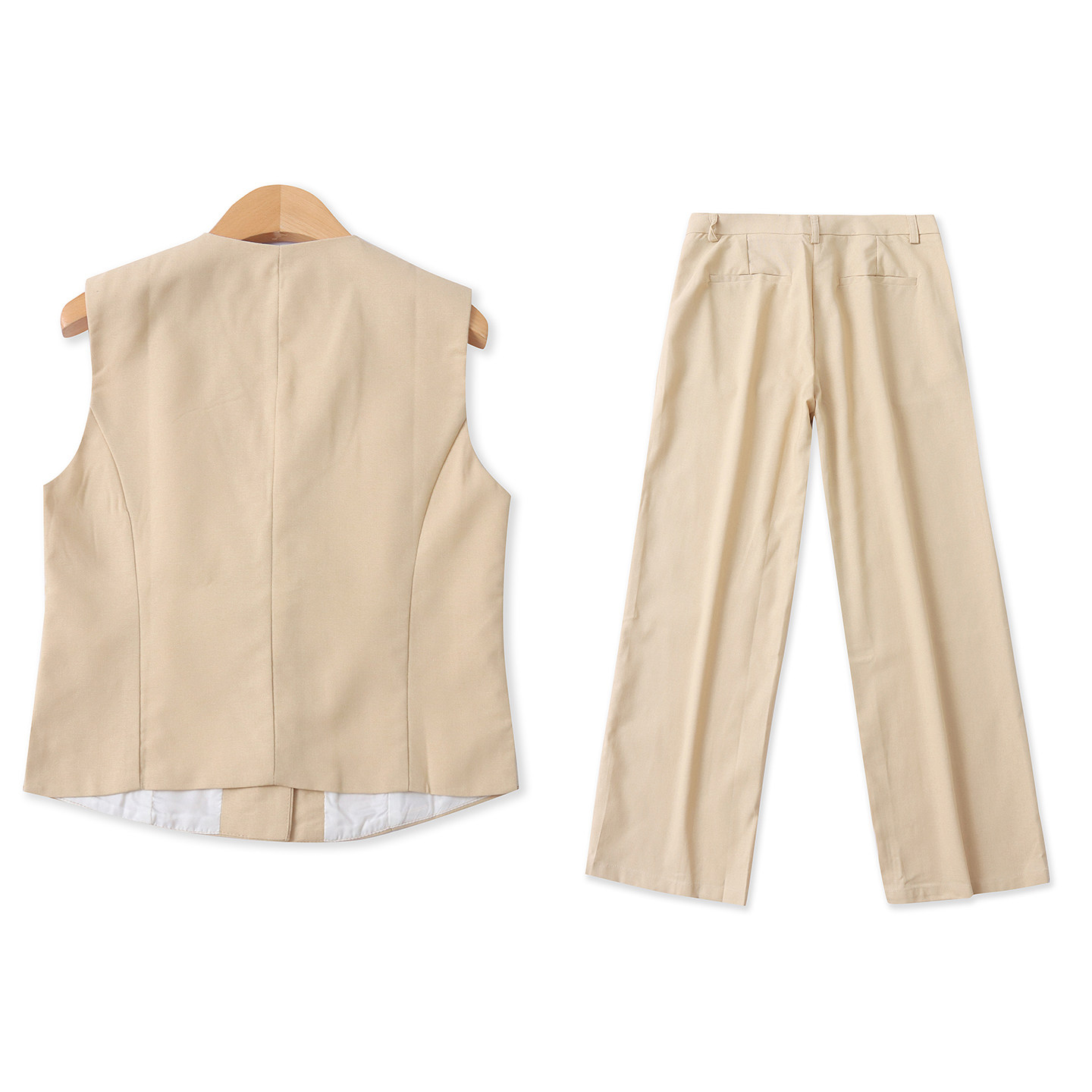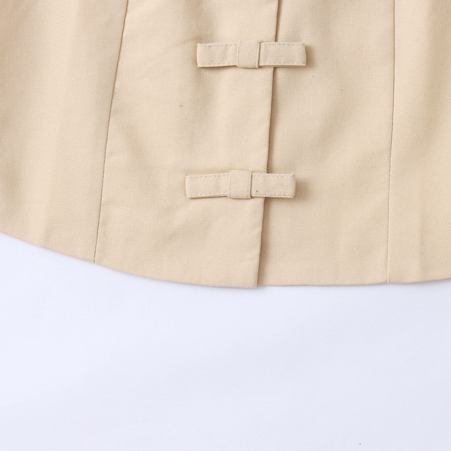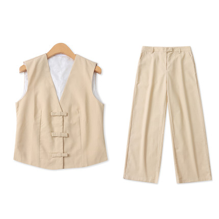 棉麻套装秋新款外贸女装中式按扣修身背心+高腰西装裤分开卖18417