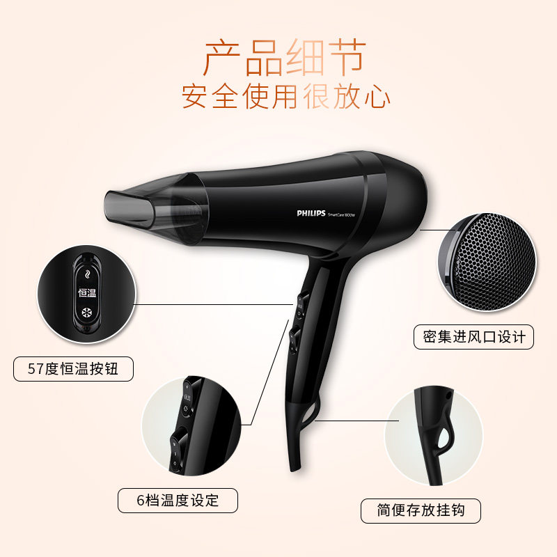 飞利浦电吹风机HP8132家用大功率大风力发廊学生速干吹风筒BHC020