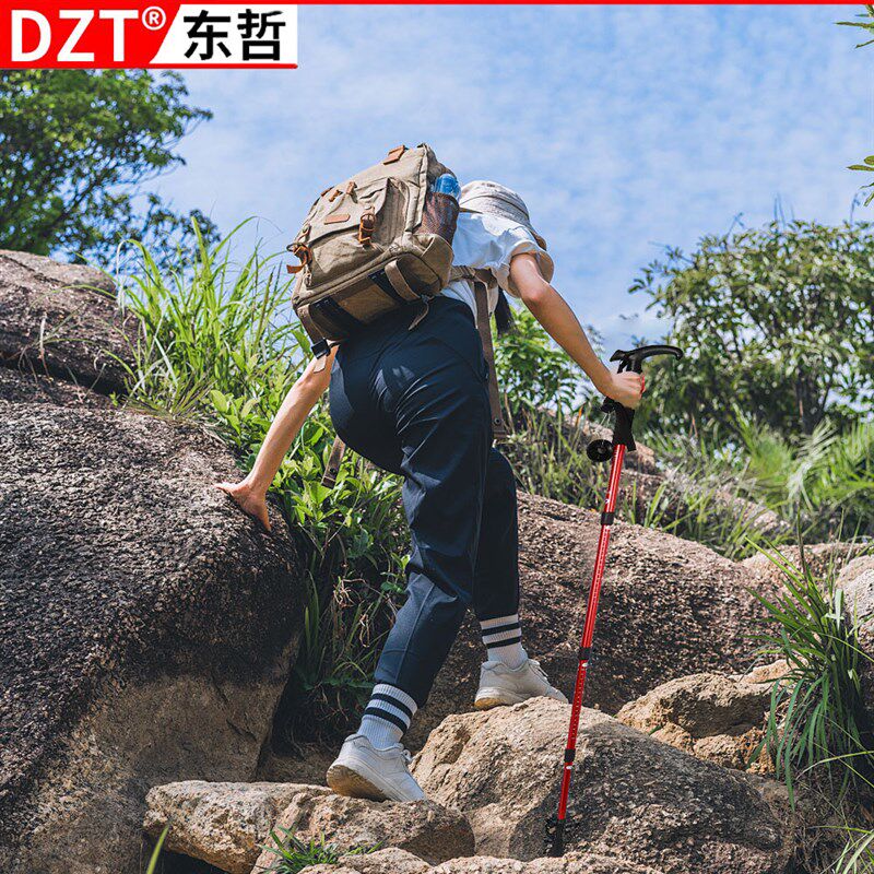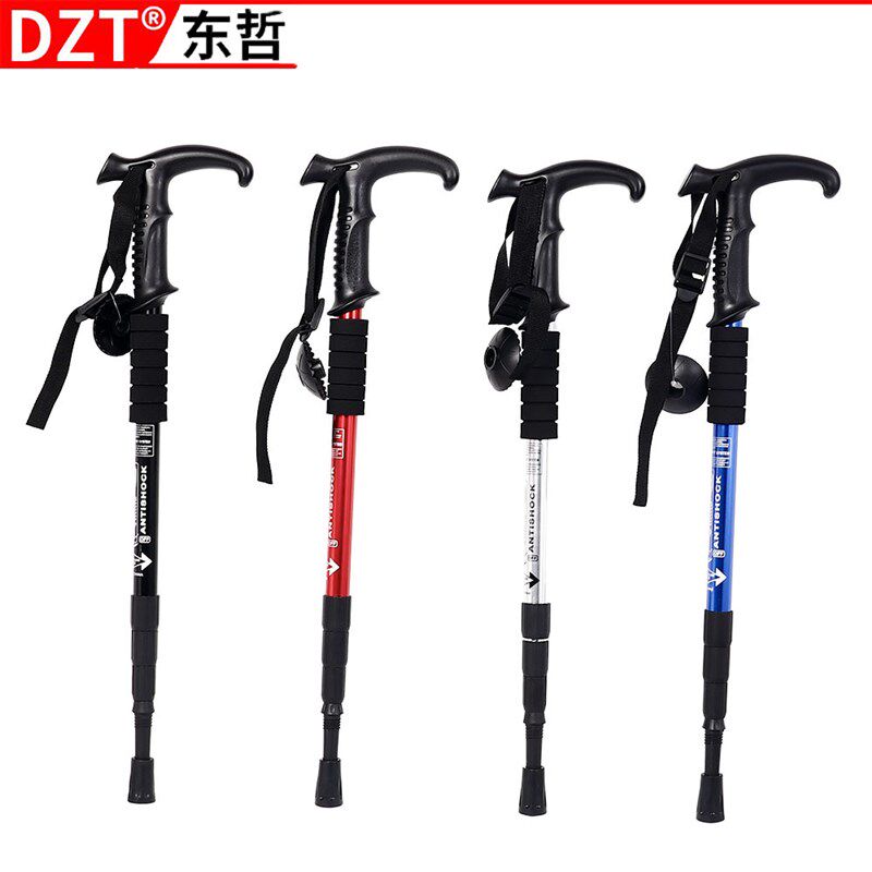登山杖铝合金便捷伸缩杖避震直柄手杖爬山徒步装备弯柄防滑拐杖