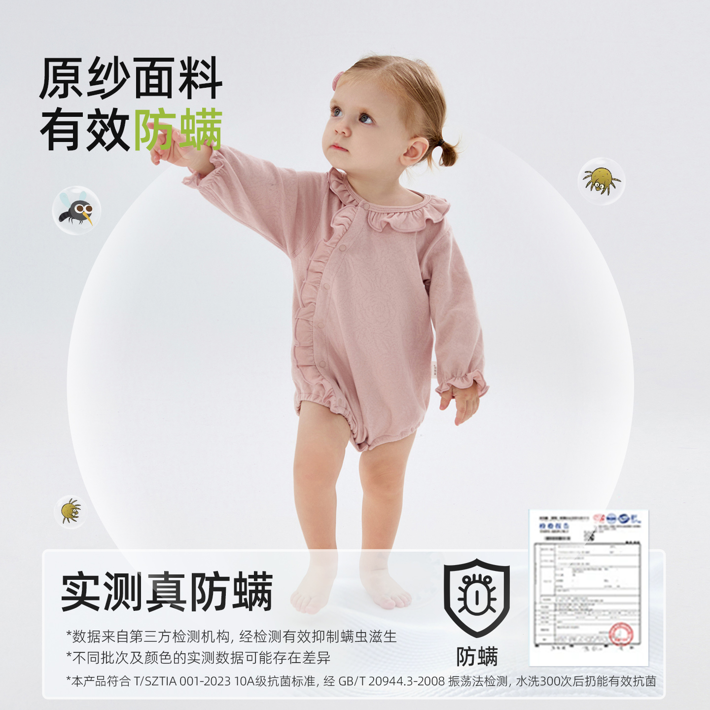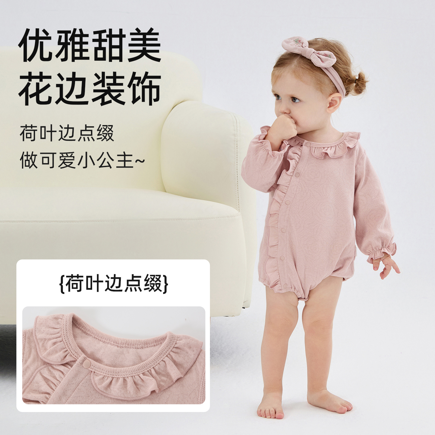 婴儿包屁衣春秋季女宝宝纯棉长袖连体衣三角哈衣爬服早秋装花边领