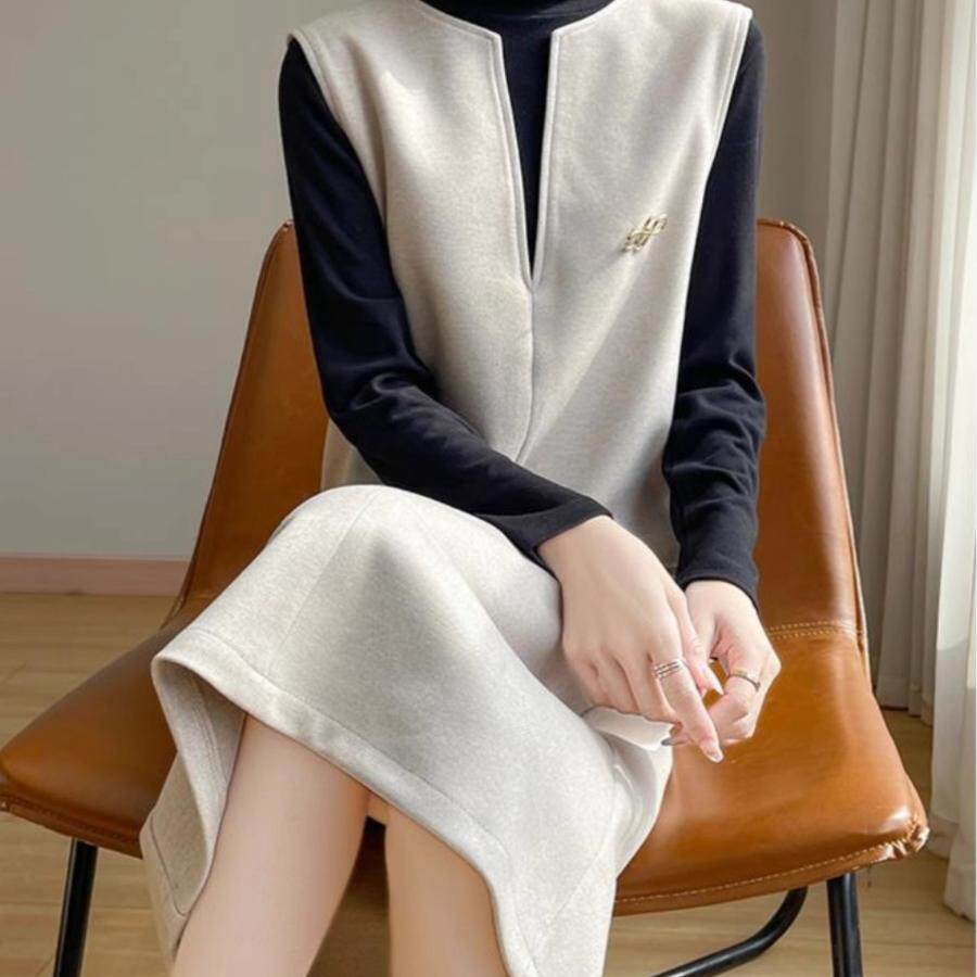 中长款斜纹呢无袖连衣裙女马甲背心裙过膝坎肩上衣2025新款毛衣裙