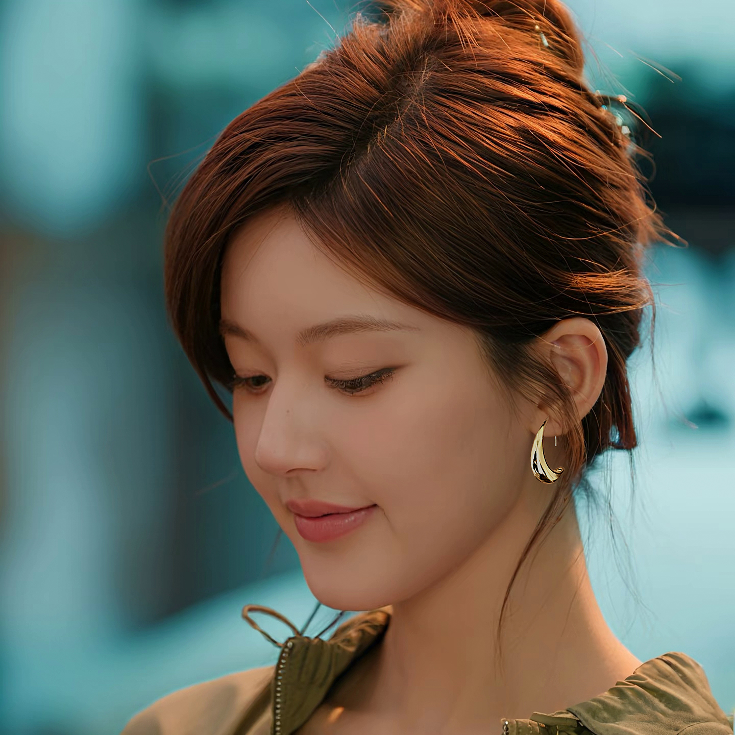 许我耀眼同款金色水滴圈圈耳环
