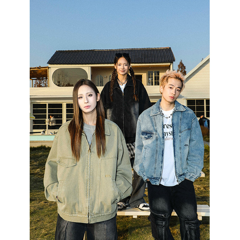 MANYSTON美式高街痞帅休闲外套男款春秋季潮牌青少年复古牛仔夹克