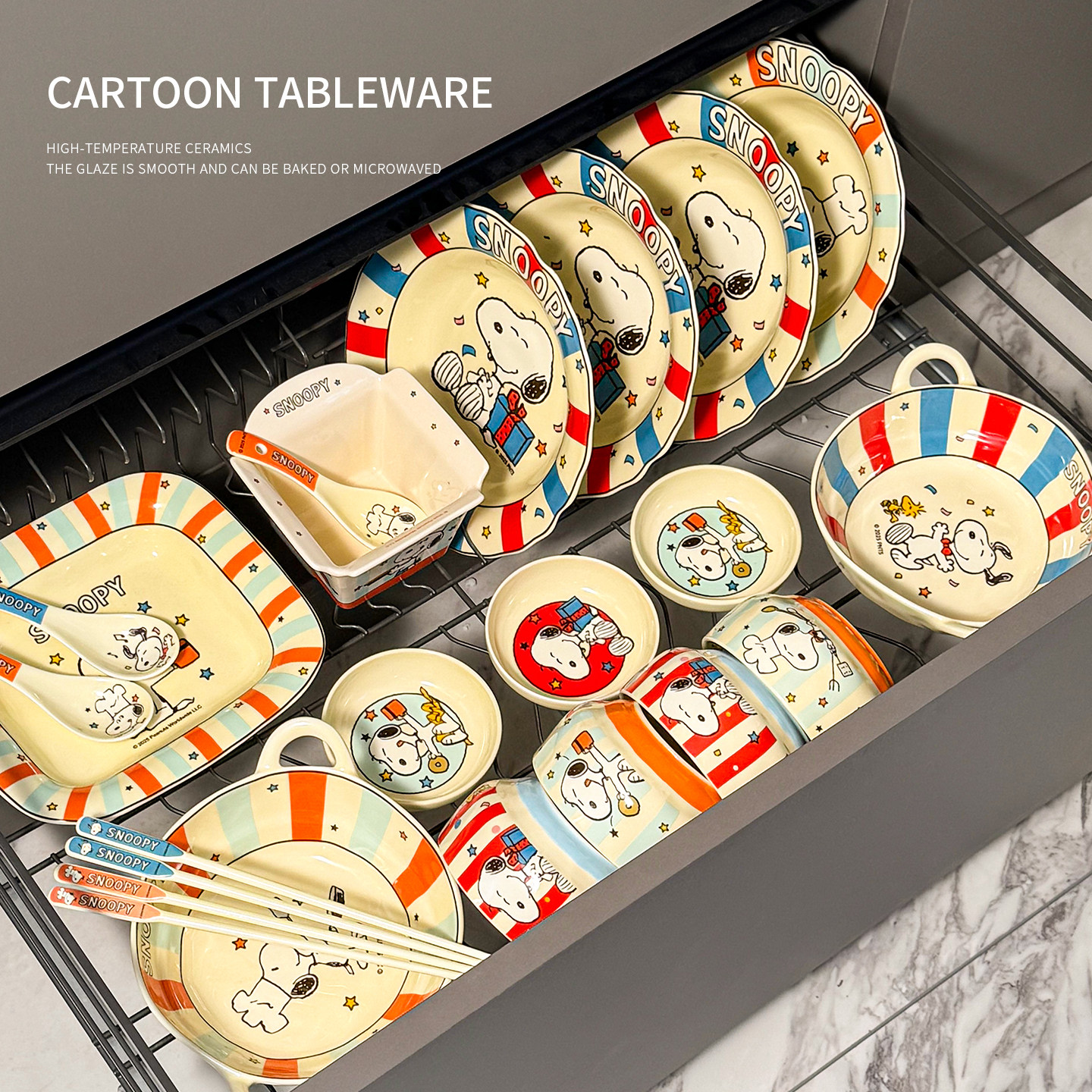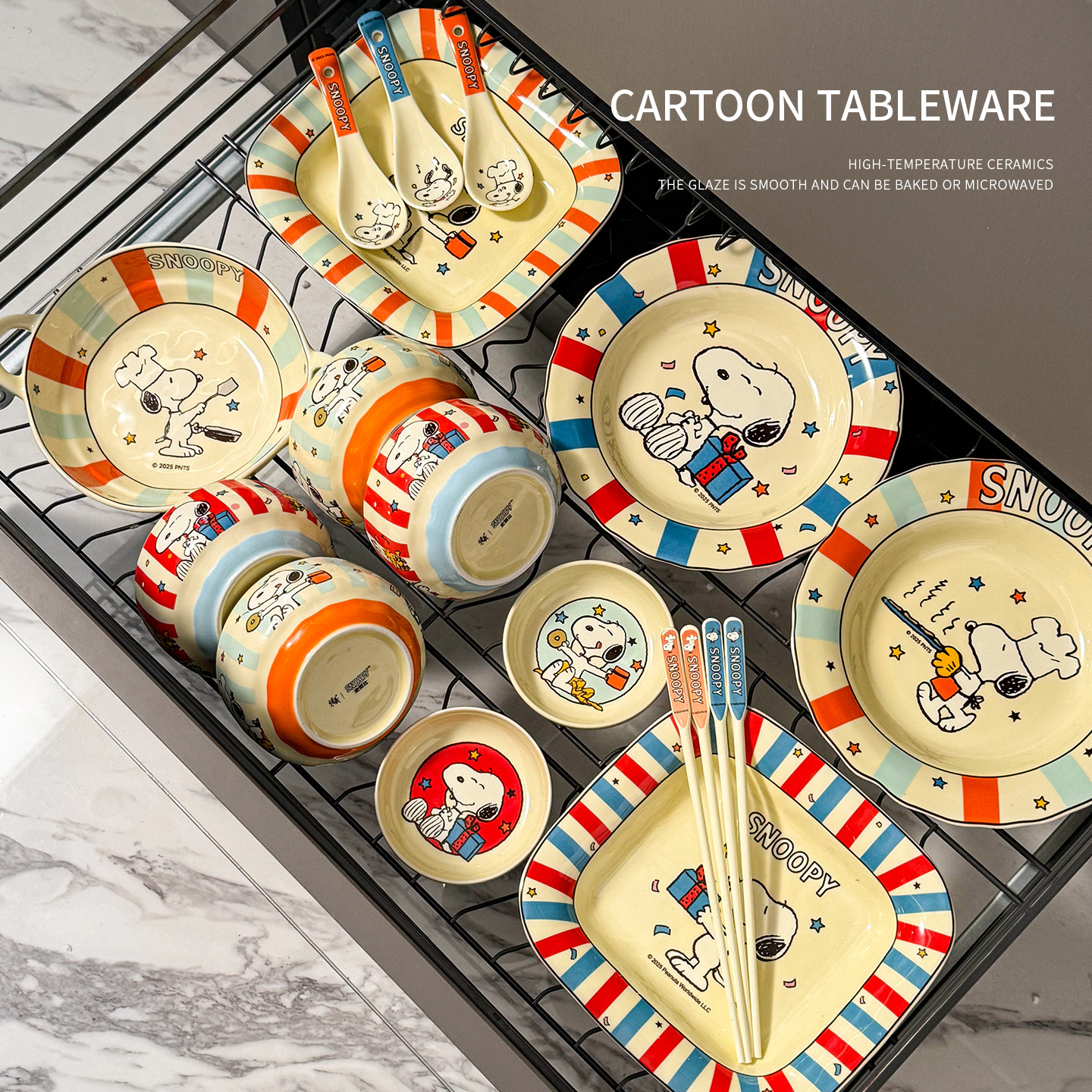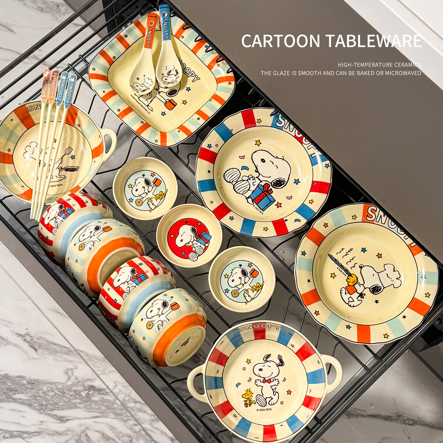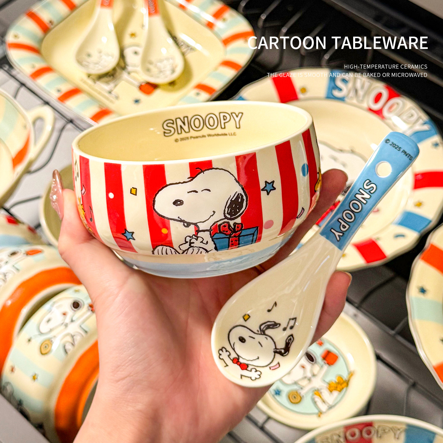 史努比新年碗盘餐具套装红色条纹家用饭碗碟子菜盘一人食礼盒送礼