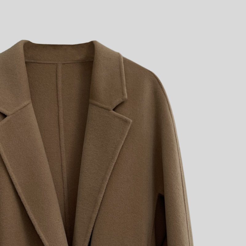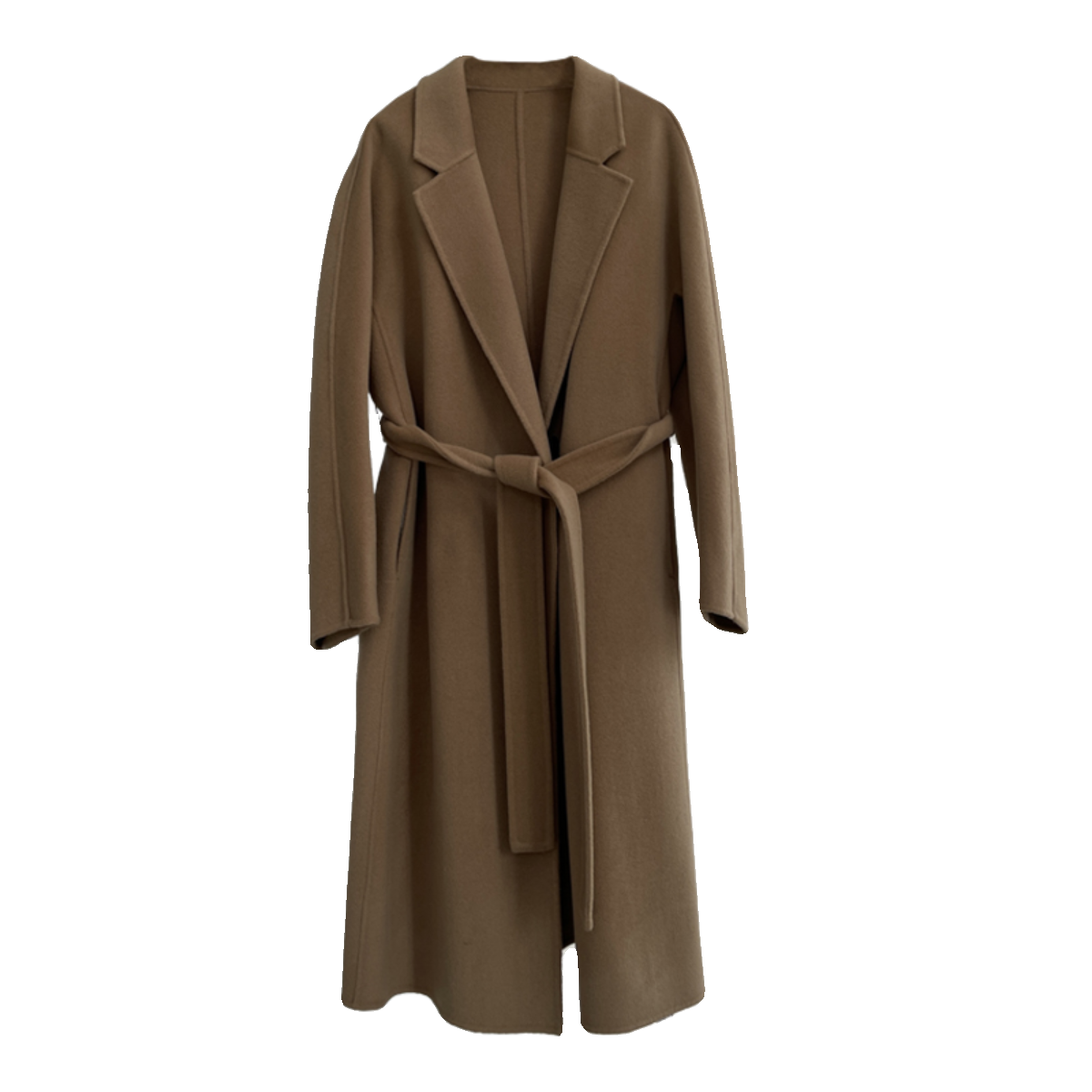 犀利哥 之禾原 秋冬新款 咖色双面毛呢 腰带羊毛长款大衣外套秋冬