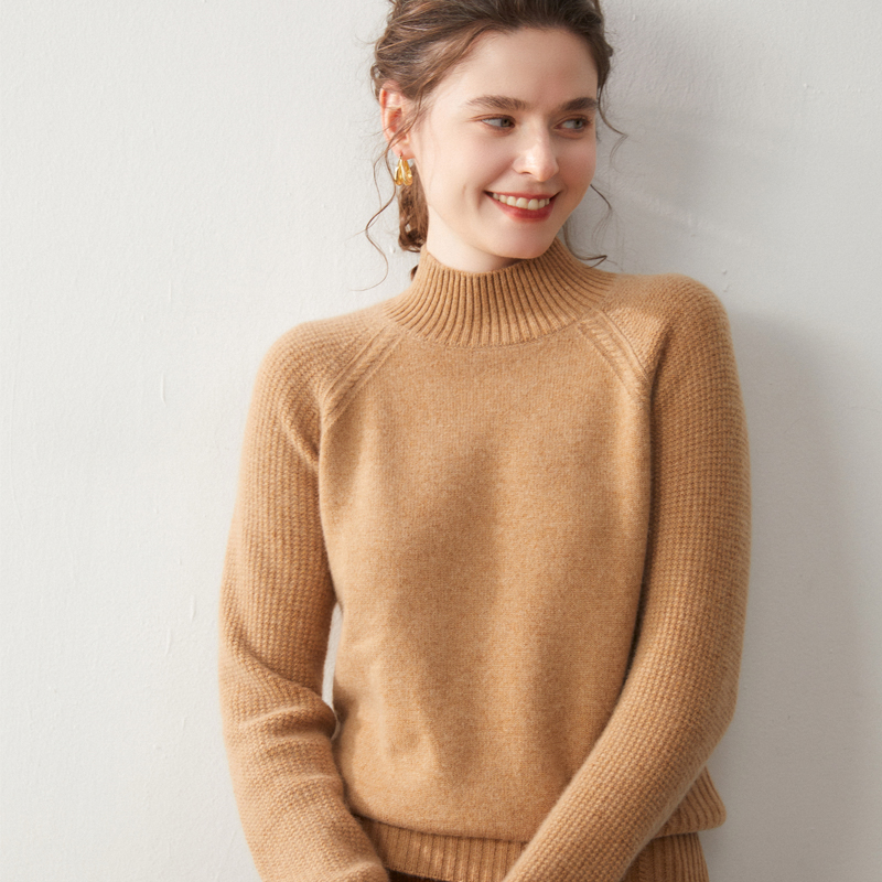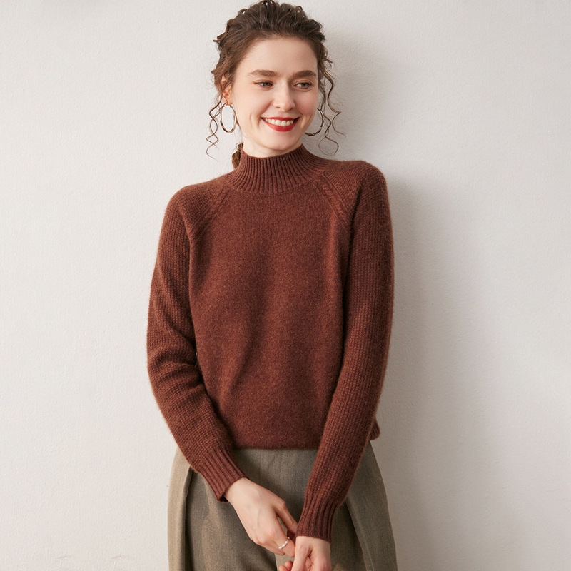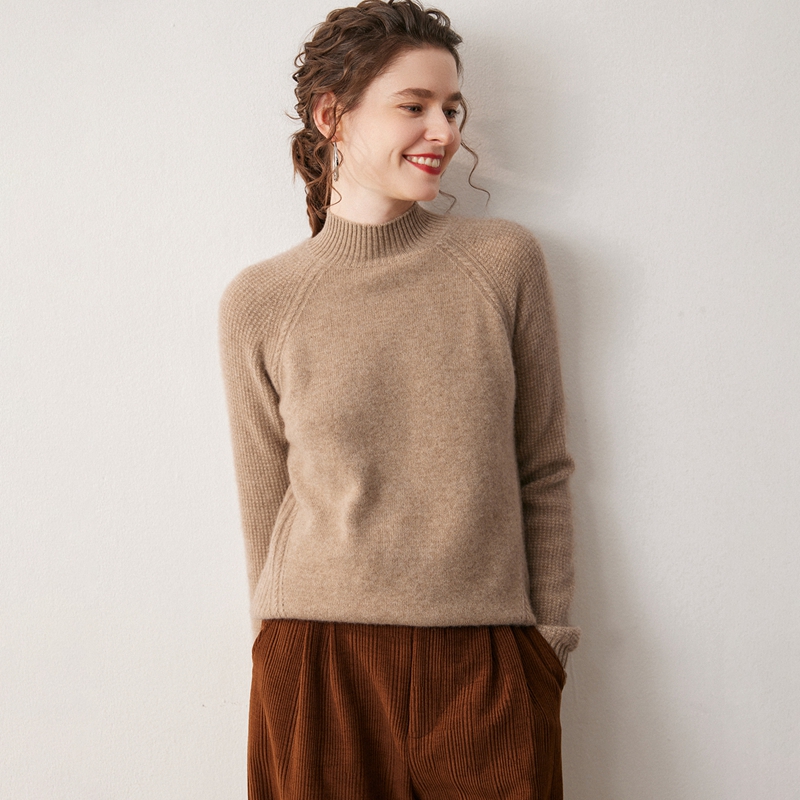秋冬新款羊绒衫女纯色半高领套头毛衣宽松插肩加厚羊毛针织打底衫
