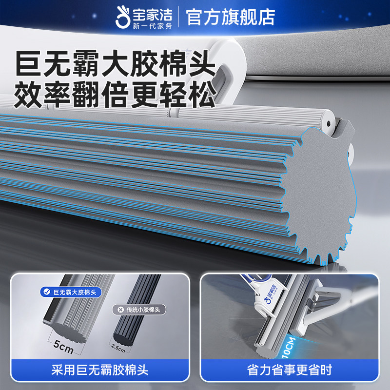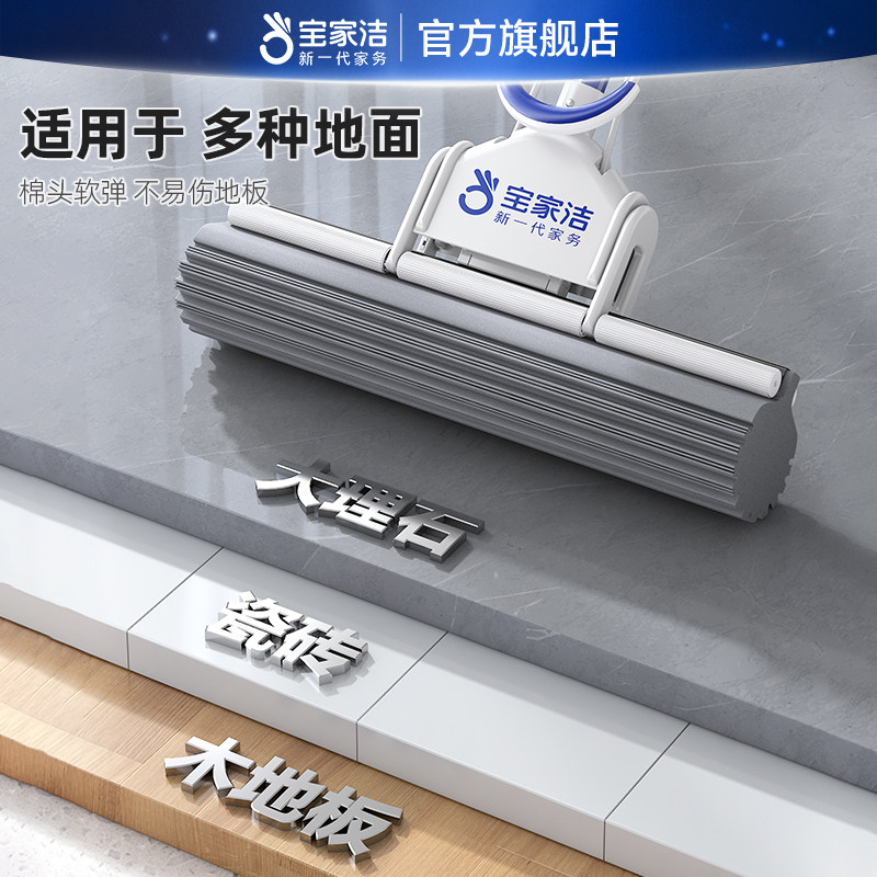 【杨幂代言】宝家洁海绵拖把大号强吸水胶棉拖布家用免手洗卫生间