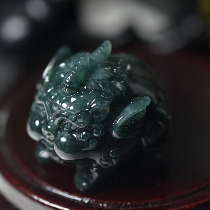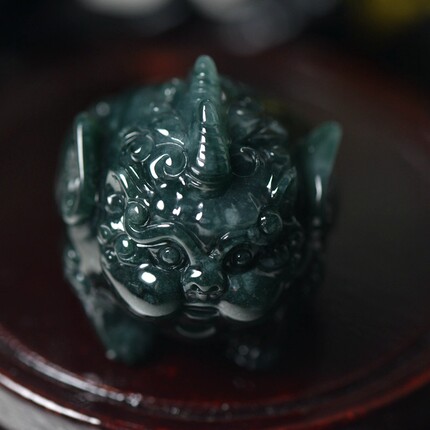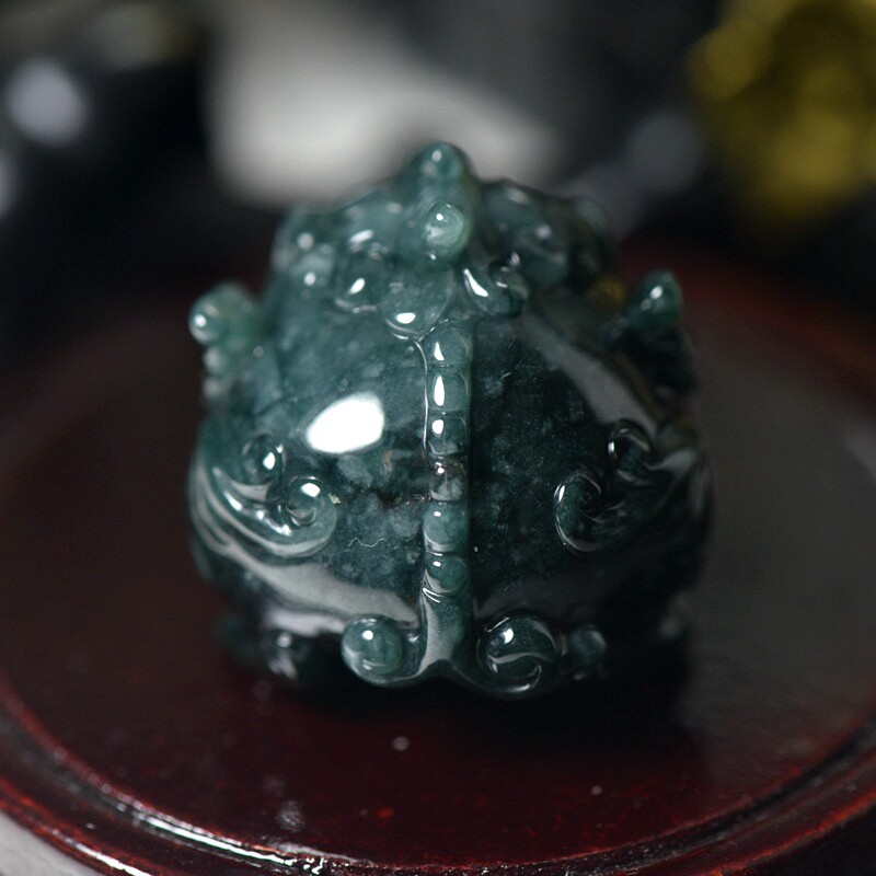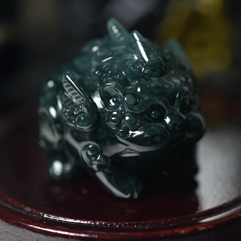 深蓝绿翡翠A货貔貅把件带证书