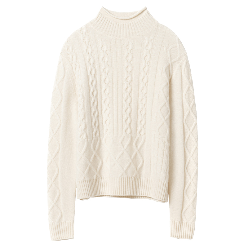 思诺芙德羊绒衫女25秋冬新款半高领山羊绒加厚针织衫绞花毛衣