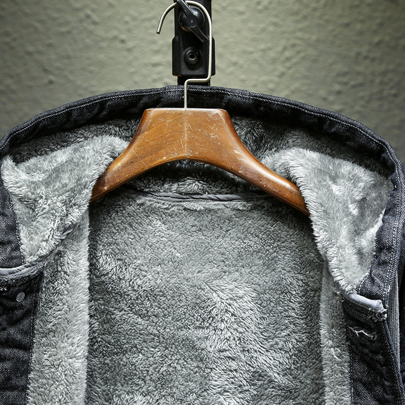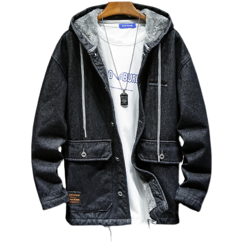 冬季加绒连帽宽松牛仔外套