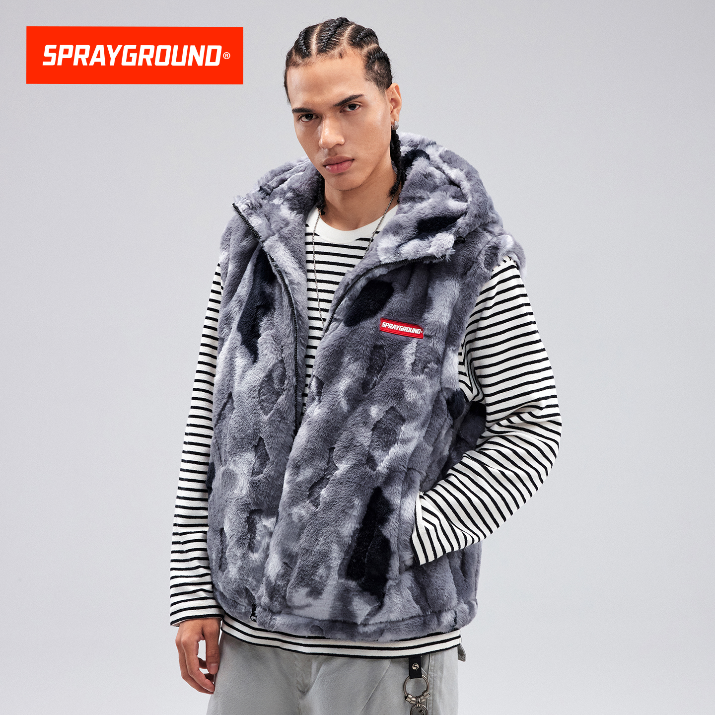 SprayGround鲨鱼嘴25秋冬毛毛绒连帽马甲男加厚保暖无袖背心外套