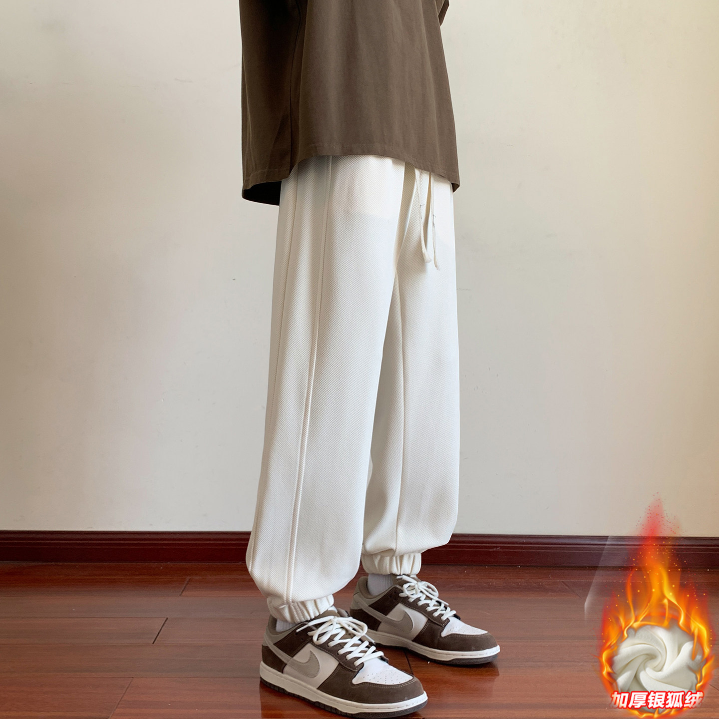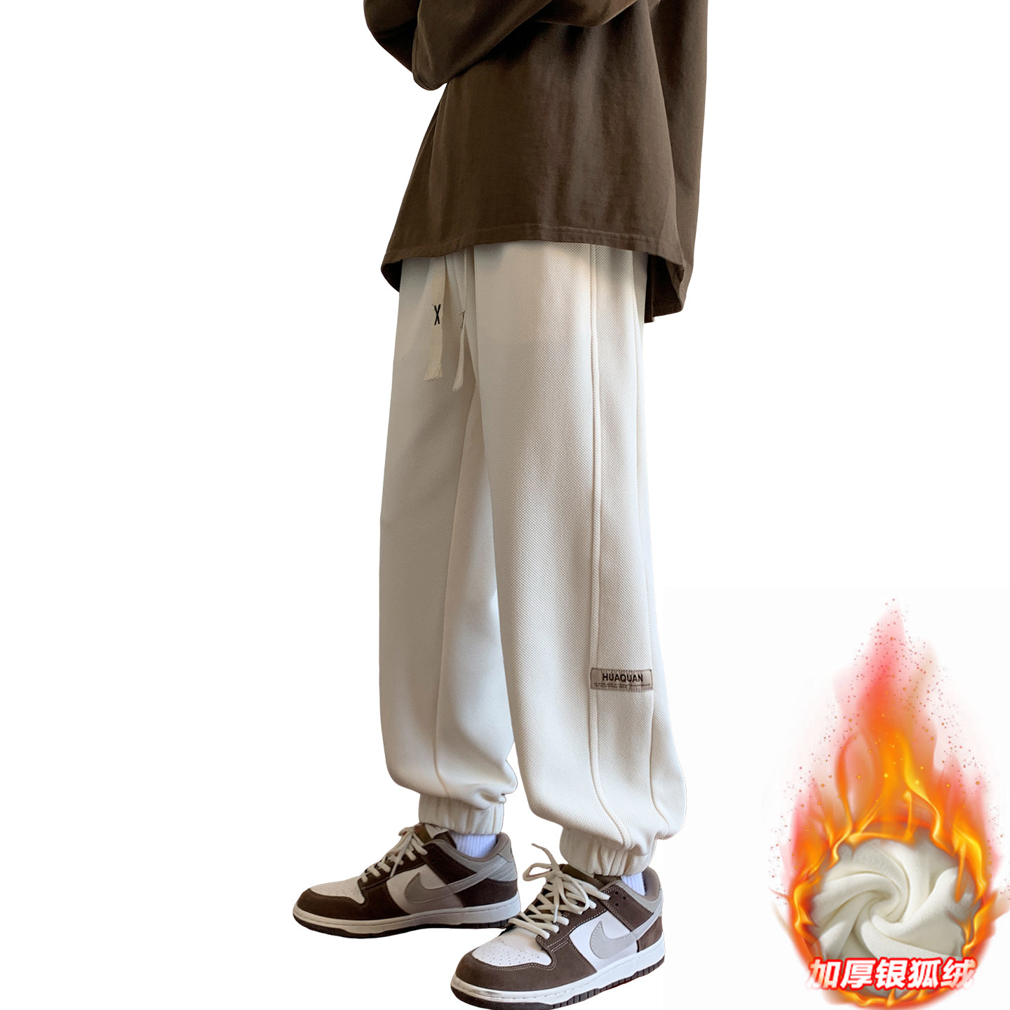 拼接重磅卫裤男秋冬季加绒加厚