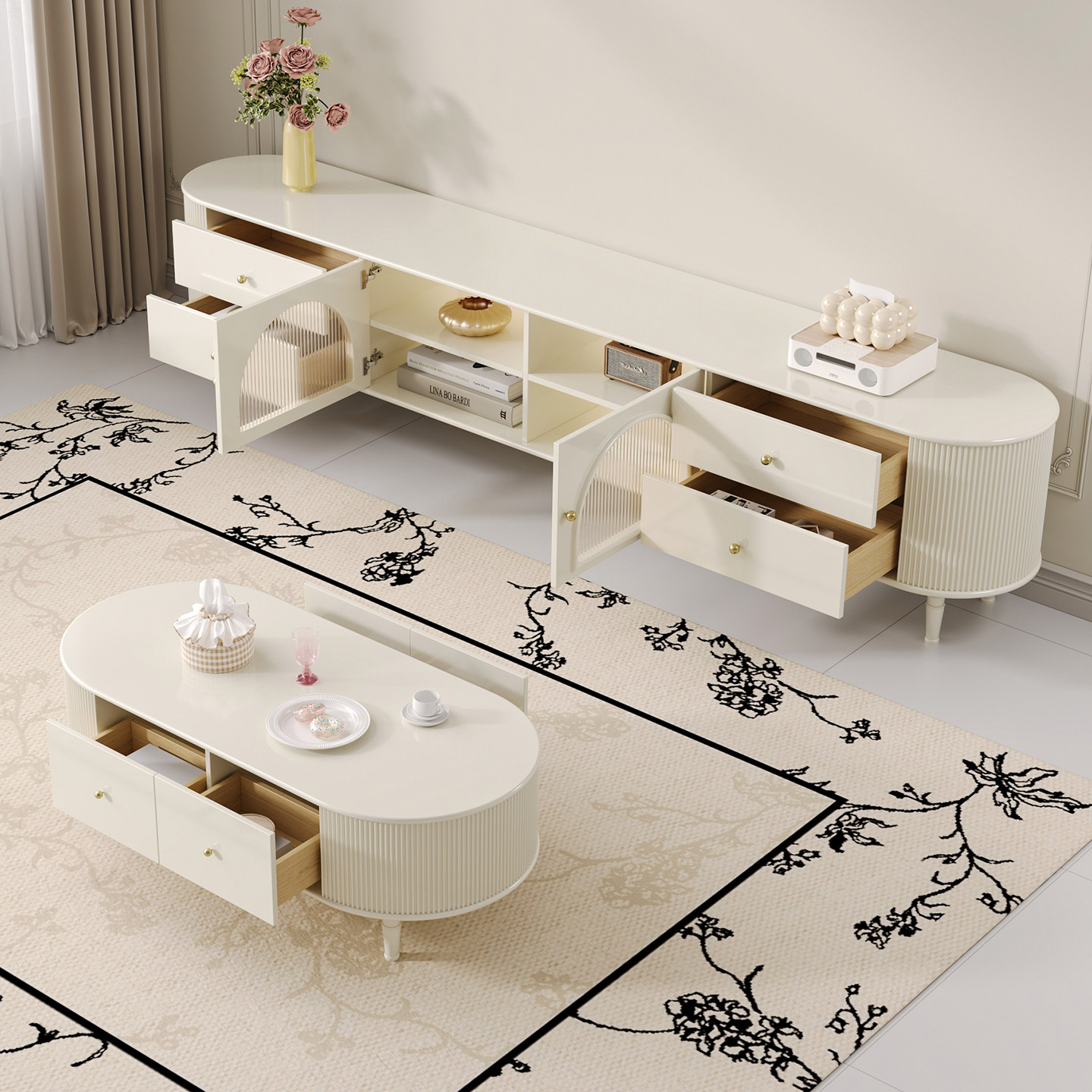 法式奶油风实木电视柜小户型客厅长虹玻璃白色烤漆电视柜茶几组合