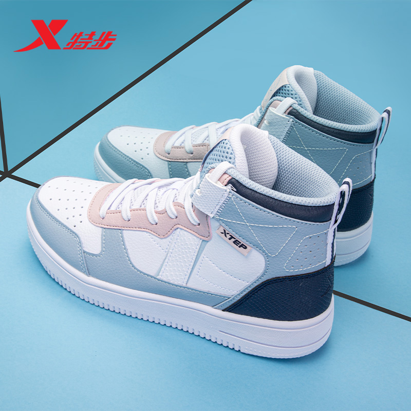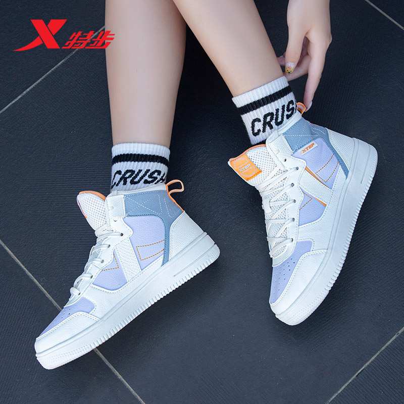 特步女鞋休闲鞋白色小白鞋秋季鞋子潮鞋正品女子运动鞋高帮板鞋女