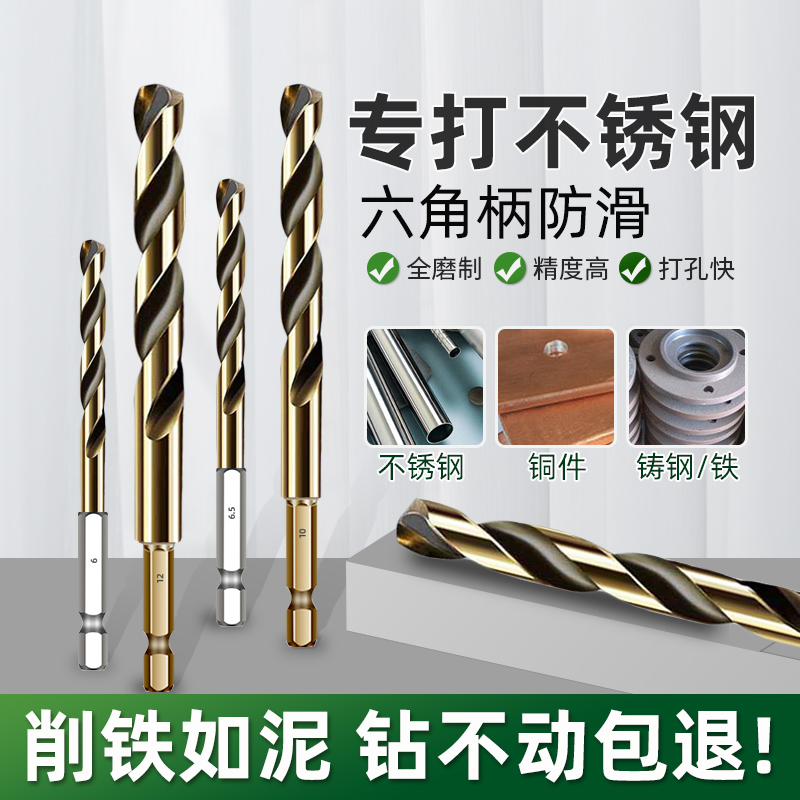 六角柄麻花钻头套装含钴高硬度合金金属打孔电钻麻花钻不锈钢专用