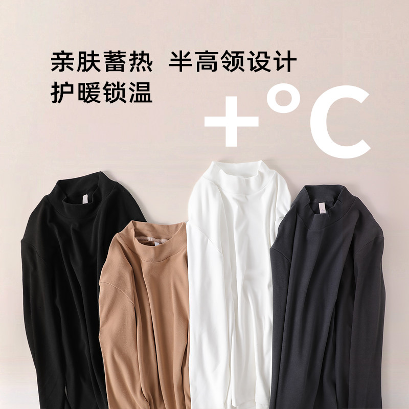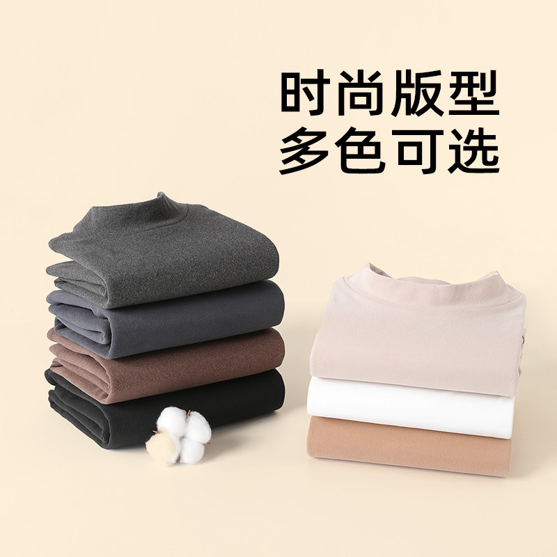 半高领德绒打底衫男秋冬加绒加厚保暖秋衣双面绒内搭加绒长袖