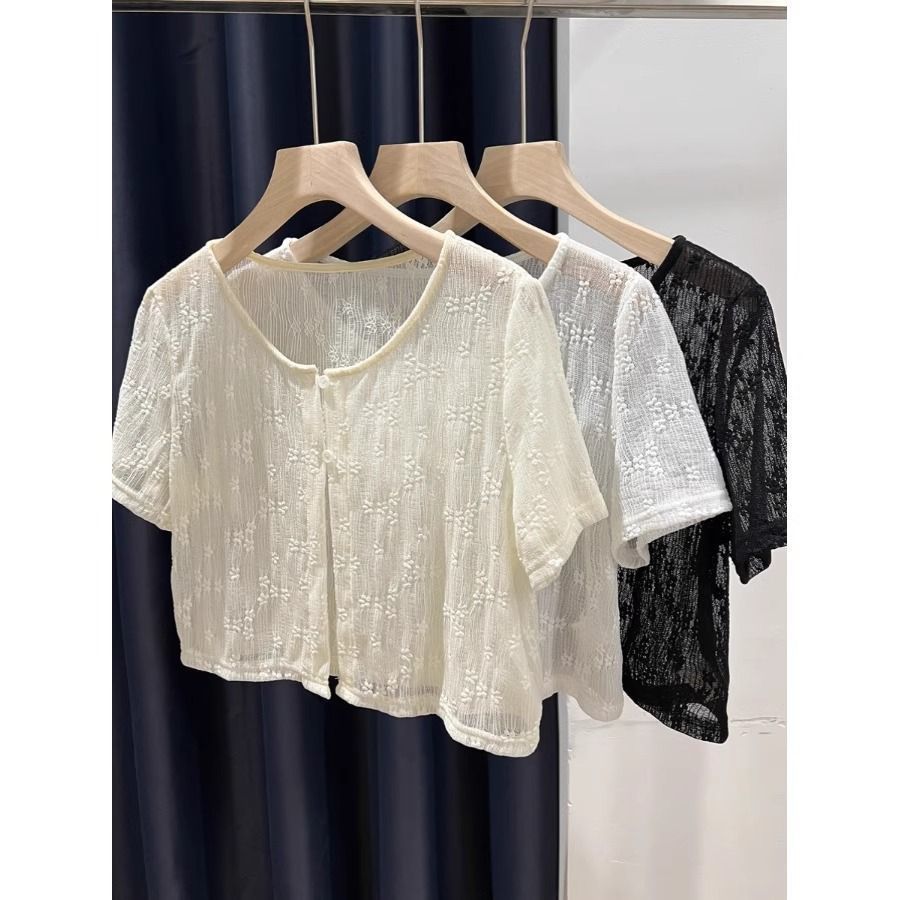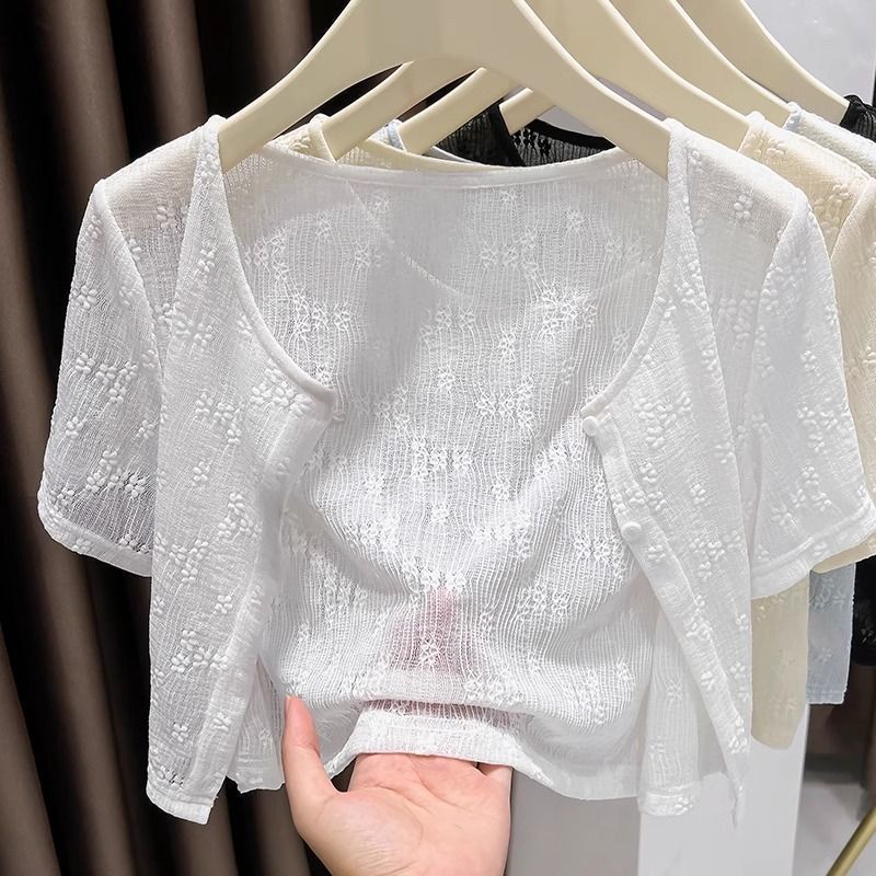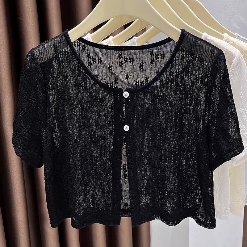 大码冰丝网纱小披肩防晒女裝胖mm配吊带裙外搭短袖空调罩衫短外套