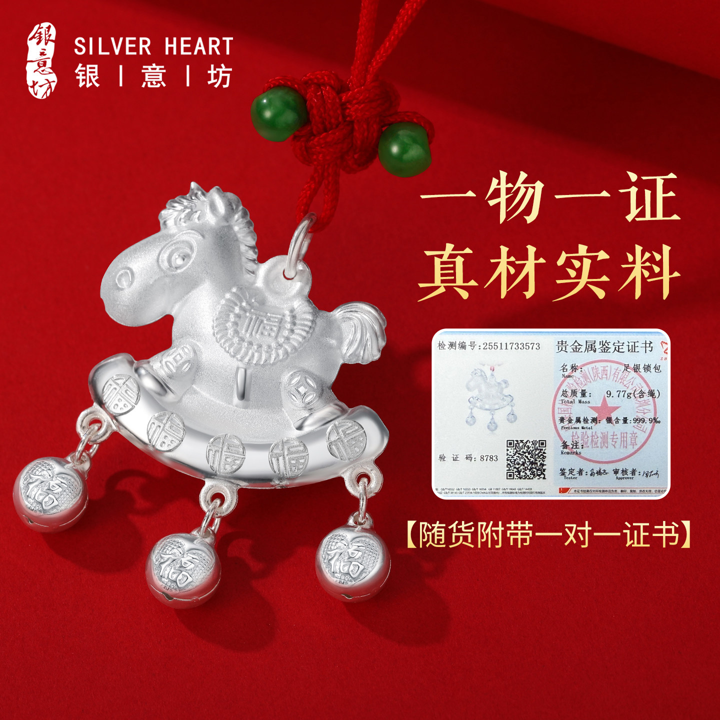 银锁9999纯银长命锁宝宝平安锁项链小马吊坠马年新出生婴儿见面礼