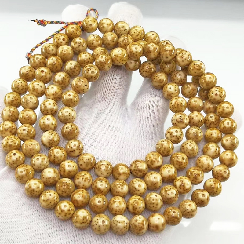 海南原生态虎皮纹星月菩提子金斑籽手串108颗佛珠正月圆桶珠项链