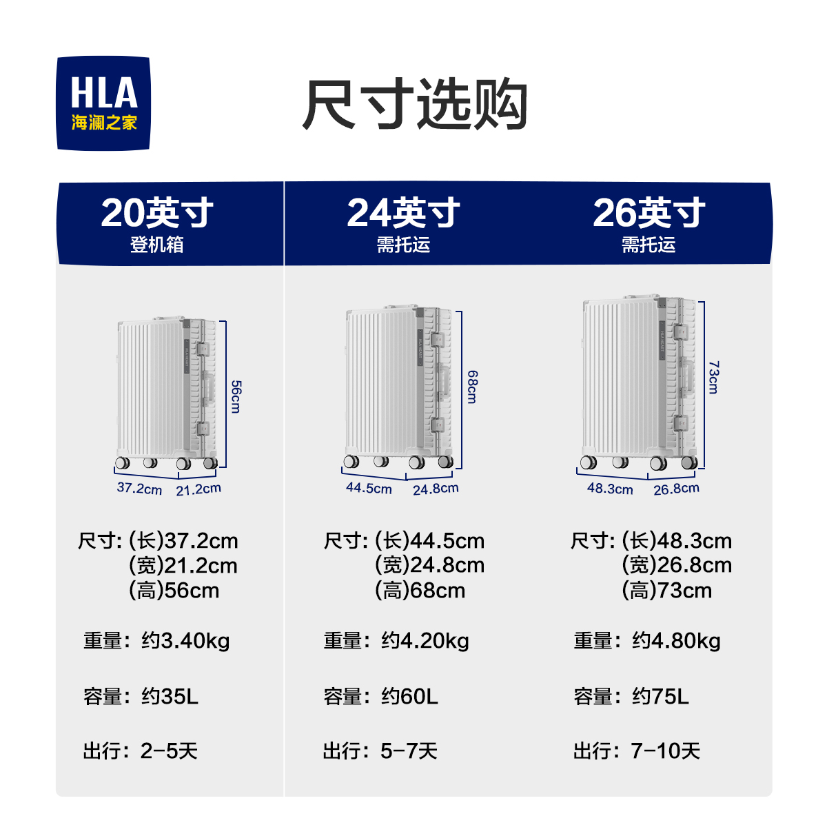 HLA/海澜之家行李箱男女铝框拉杆箱旅行登机密码托运大容量皮箱子