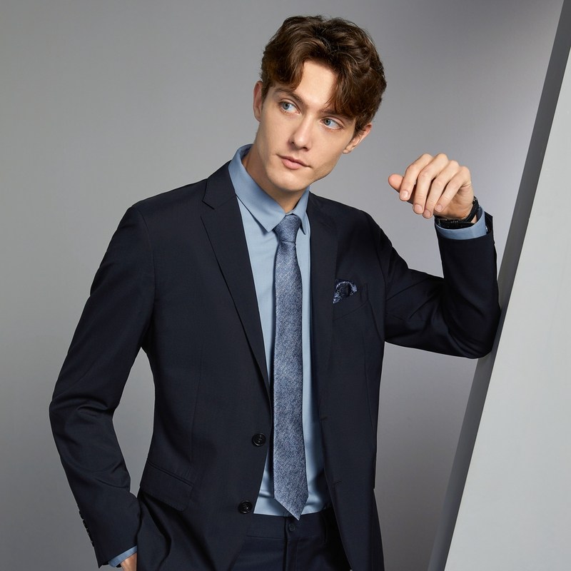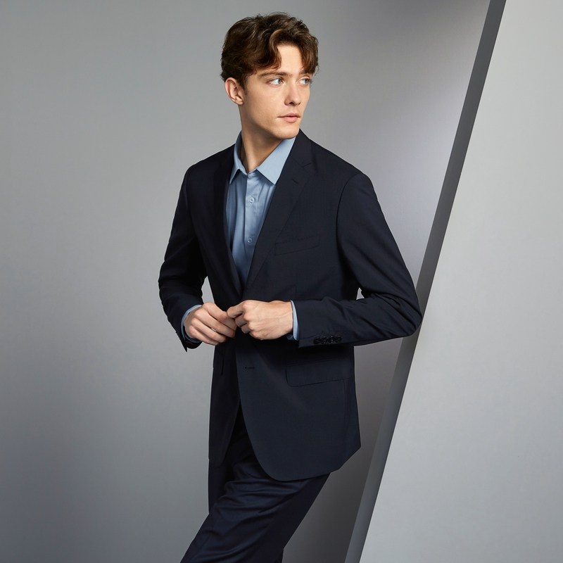 【高端系列】柒牌西装外套含羊毛莱赛尔商务正装结婚黑色男士西服