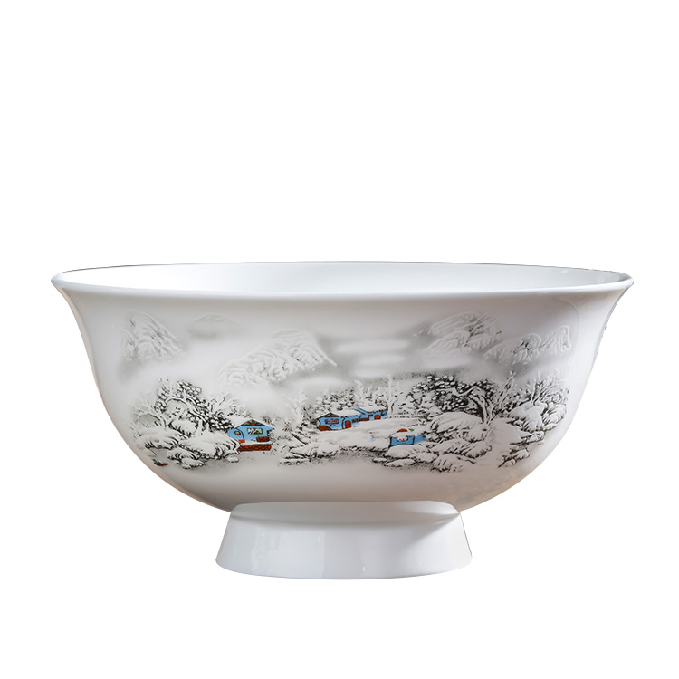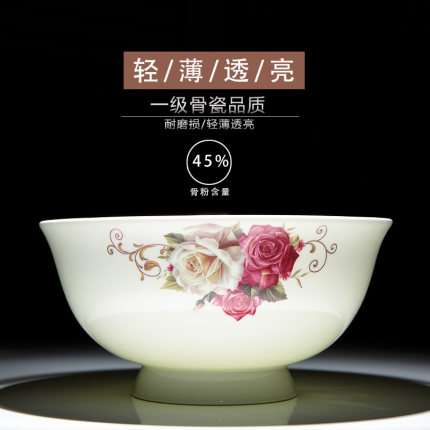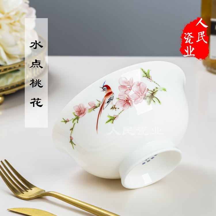 10个景德镇骨瓷高脚米饭碗陶瓷吃饭碗面碗花鸟碗碟筷套装家用餐具