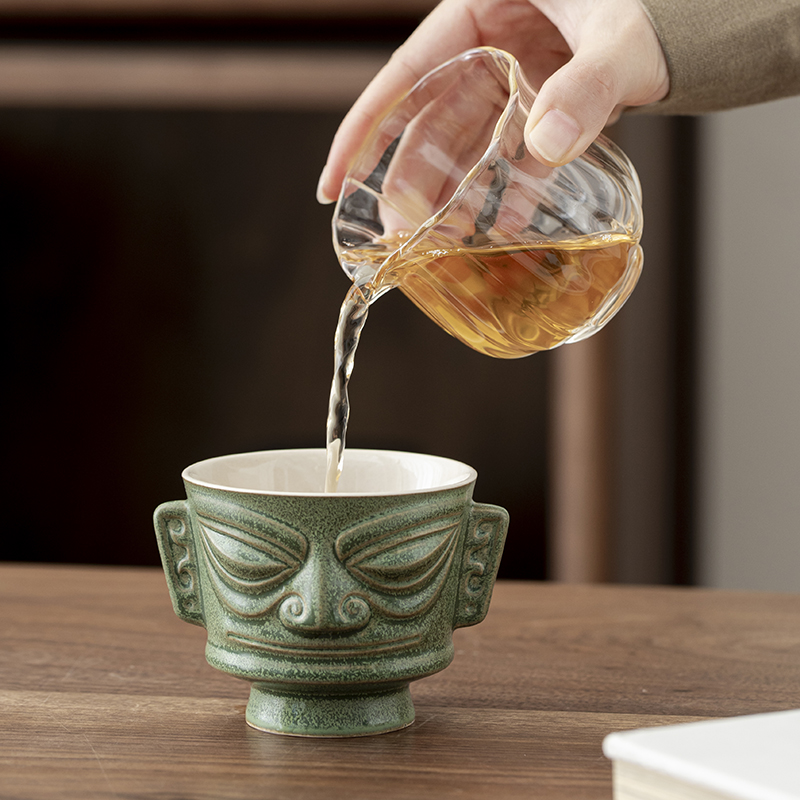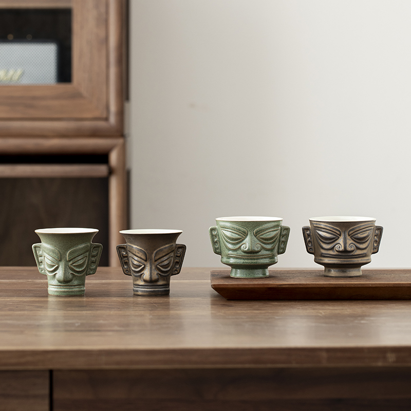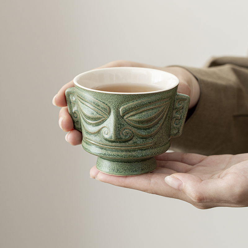 三星堆文创青铜面具陶瓷茶杯水杯大号主人杯家用纪念品个人专用