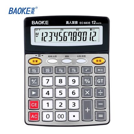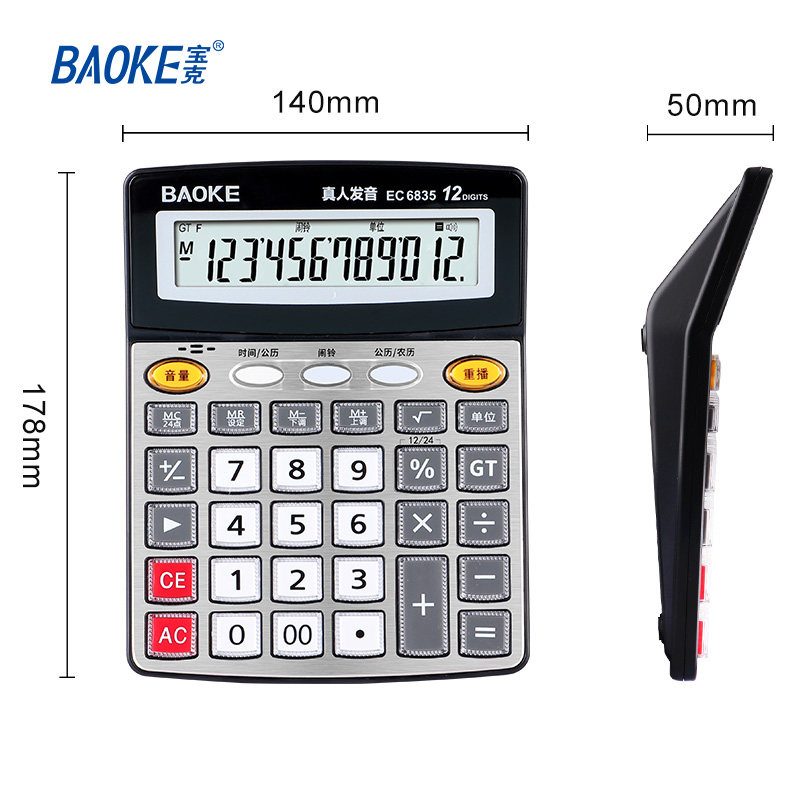 包邮宝克EC6835大屏幕语音计算器办公会计专用水晶按键收银多功能