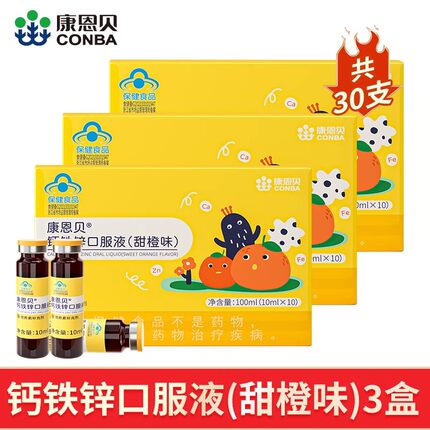 康恩贝钙铁锌口服液10瓶*3盒葡萄糖酸钙口溶液儿童青少年补锌补钙