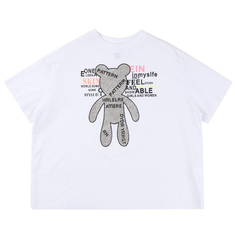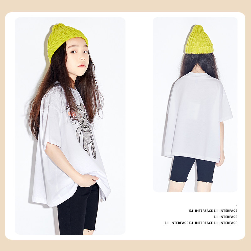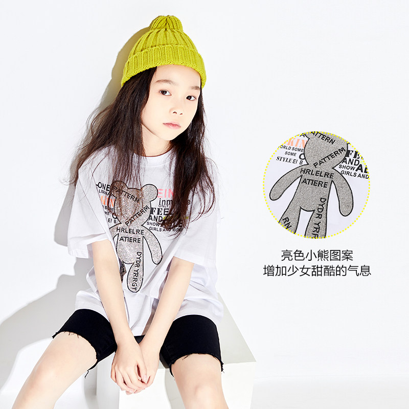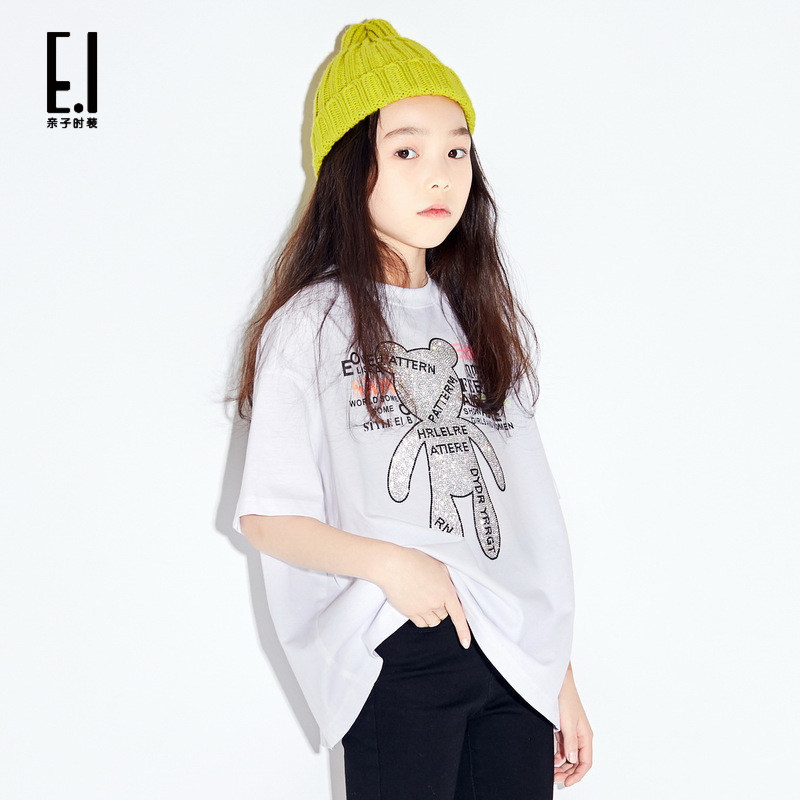 ei童装中大童亲子装甜酷t恤镶钻小熊洋气短袖女童夏季薄款凉