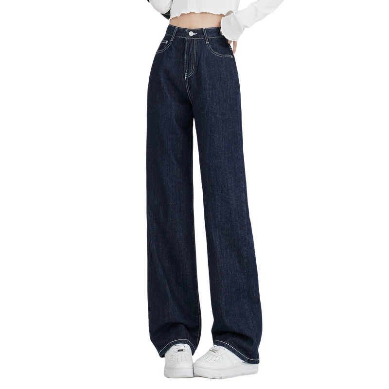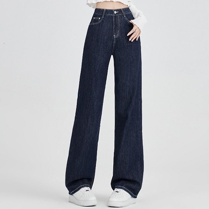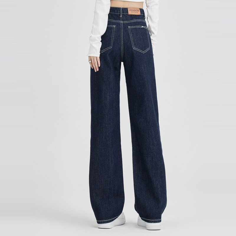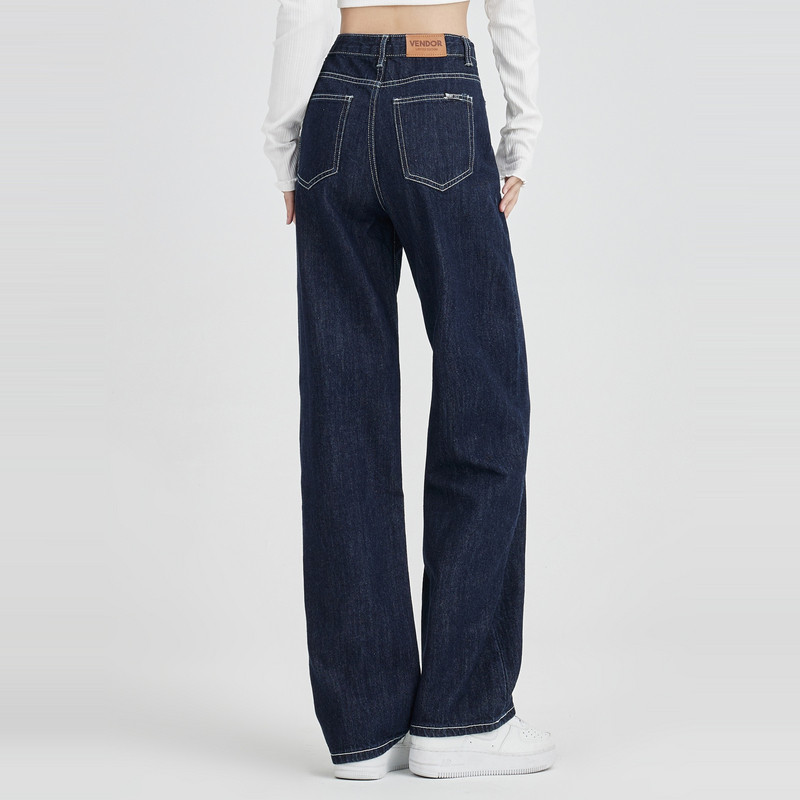 XA真维斯女装深蓝色直筒牛仔长裤 2025秋季新品女款显高牛仔裤子