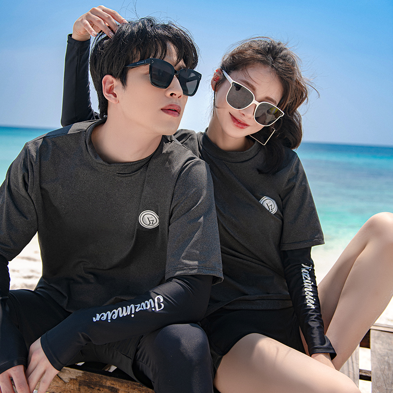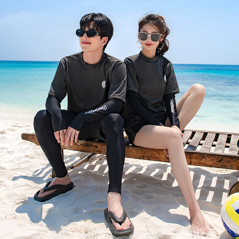 男款长袖潜水服女分体显瘦胸垫水母冲浪服情侣防晒温泉游泳衣新款