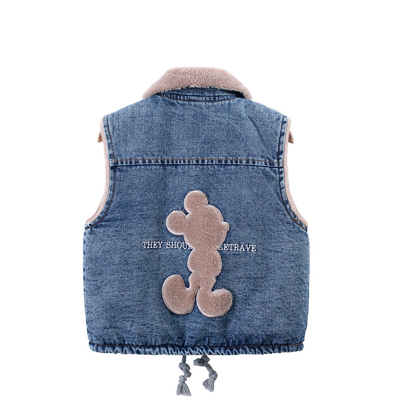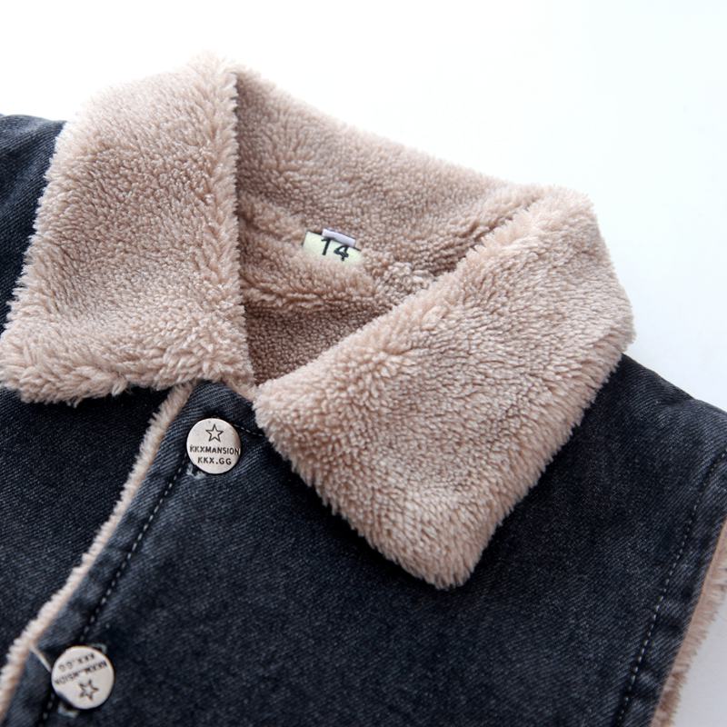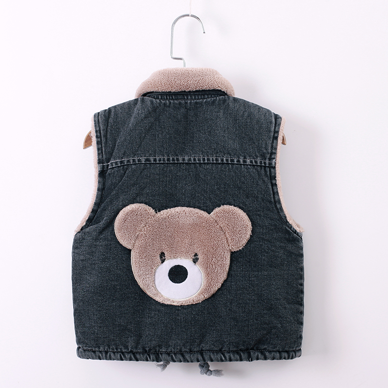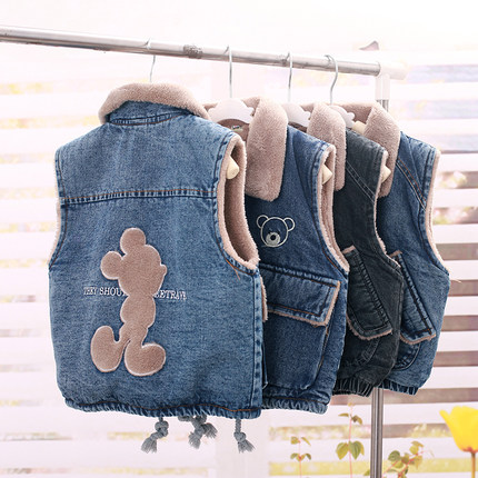 儿童牛仔马甲男秋冬季加绒加厚保暖宝宝坎肩外套女中小童上衣棉衣