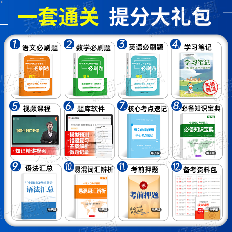 2026年中职生对口升学考试总复习资料必刷题英语数学语文专用教材26真题库模拟试卷备考单招高职中专升大专广西安徽河南河北省2025