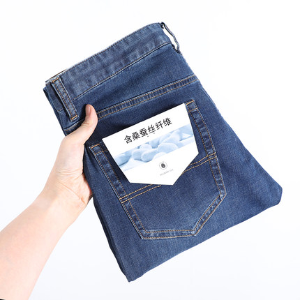 桑蚕丝!丹宁水洗!外贸男装夏季薄款百搭通勤小直筒休闲牛仔裤潮