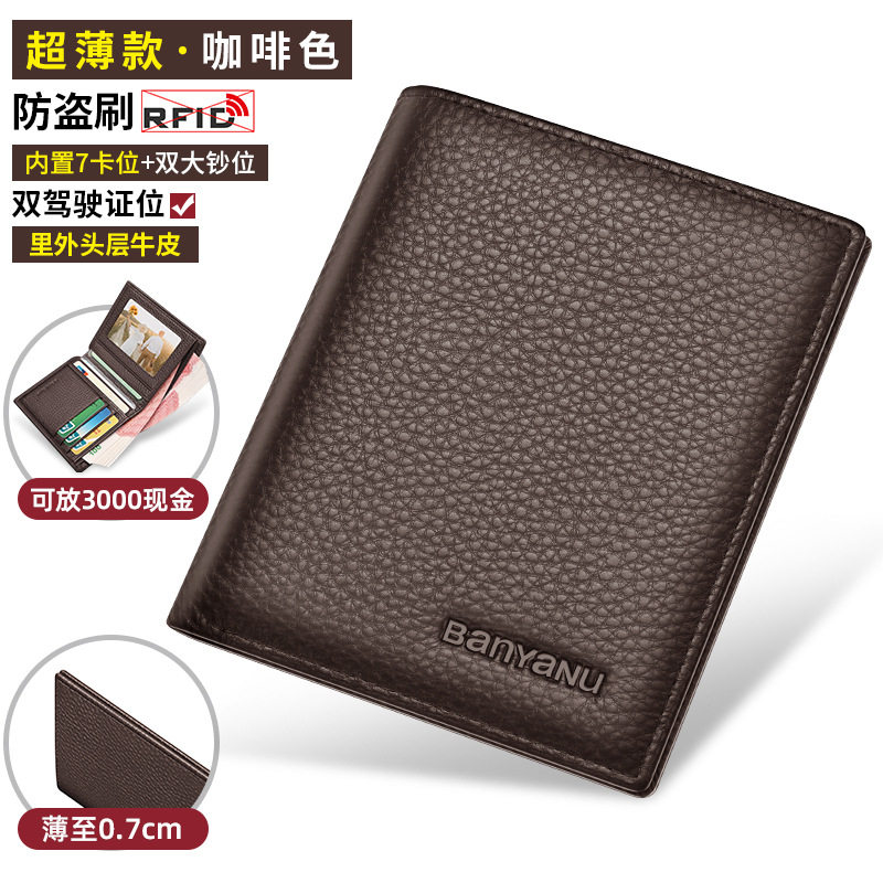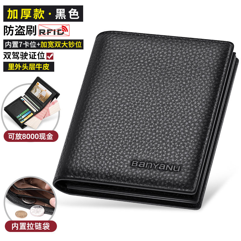 钱包男士短款真皮皮夹子竖款2025新款潮拉链头层牛皮超薄加厚钱夹